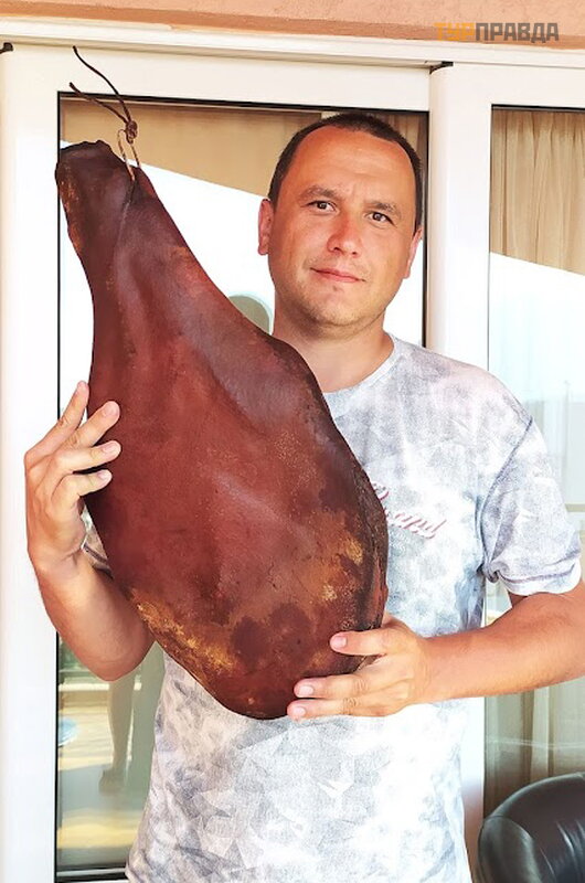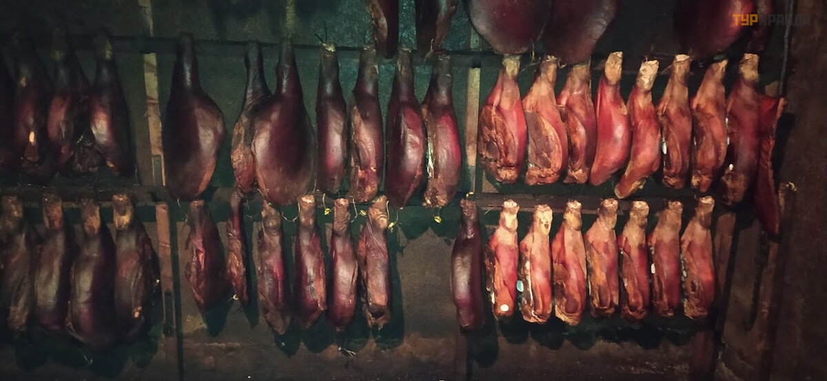 Затем он нас сводил на экскурсию на свое производство, и мы там выбрали себе целую ногу. Цена была 8 евро за килограмм, если брать ногу, и 16 евро – если мясо без кости. Нога нам обошлась в 65 евро.
