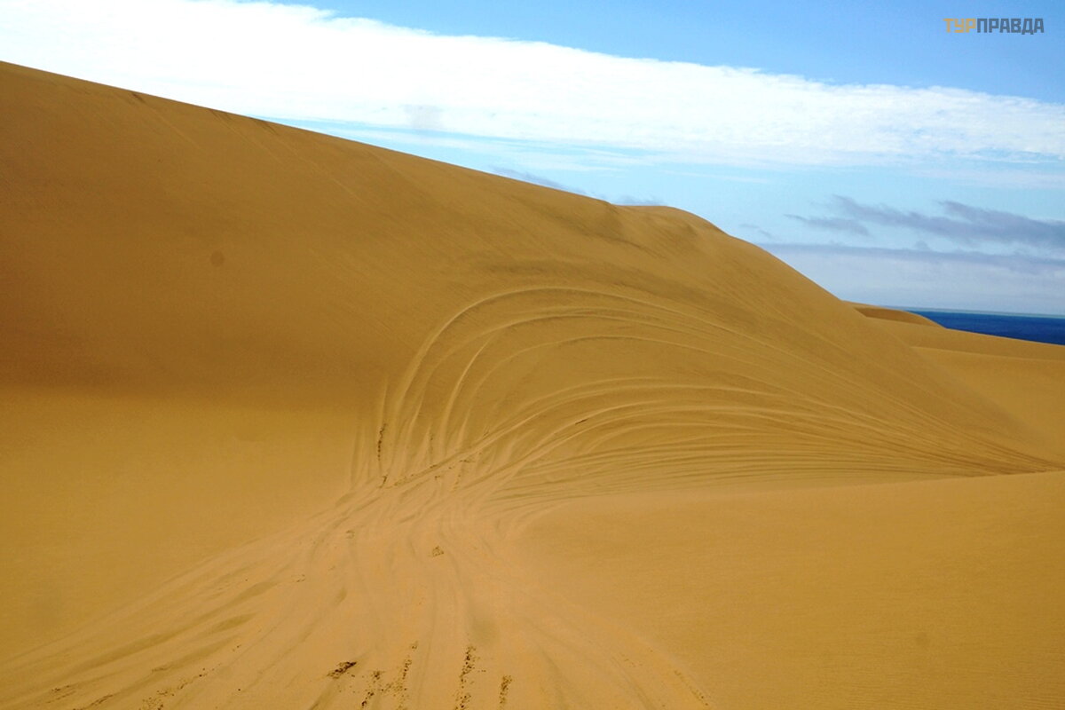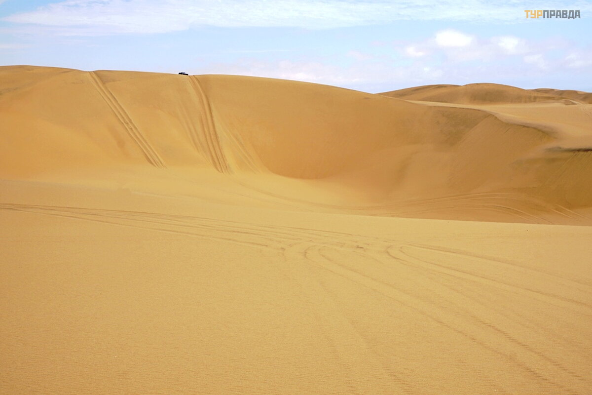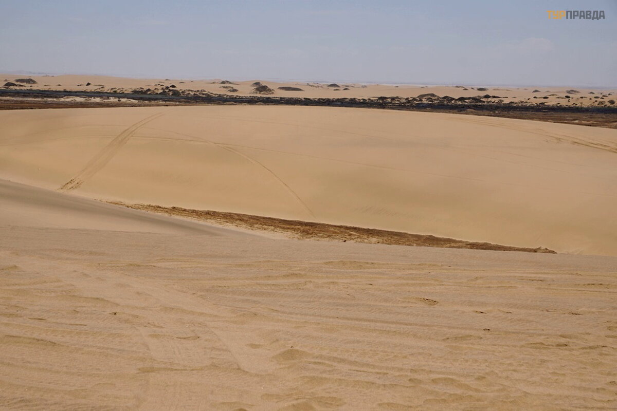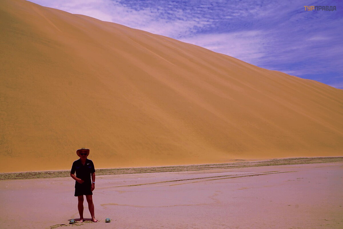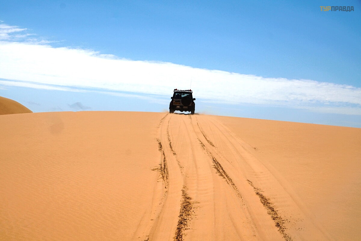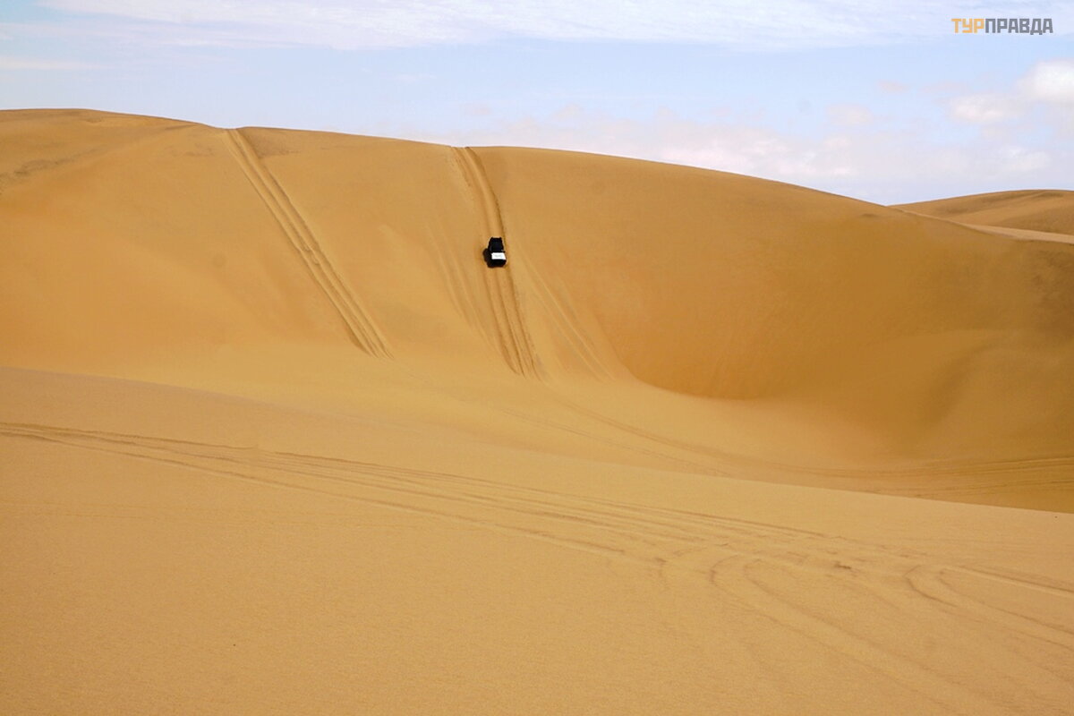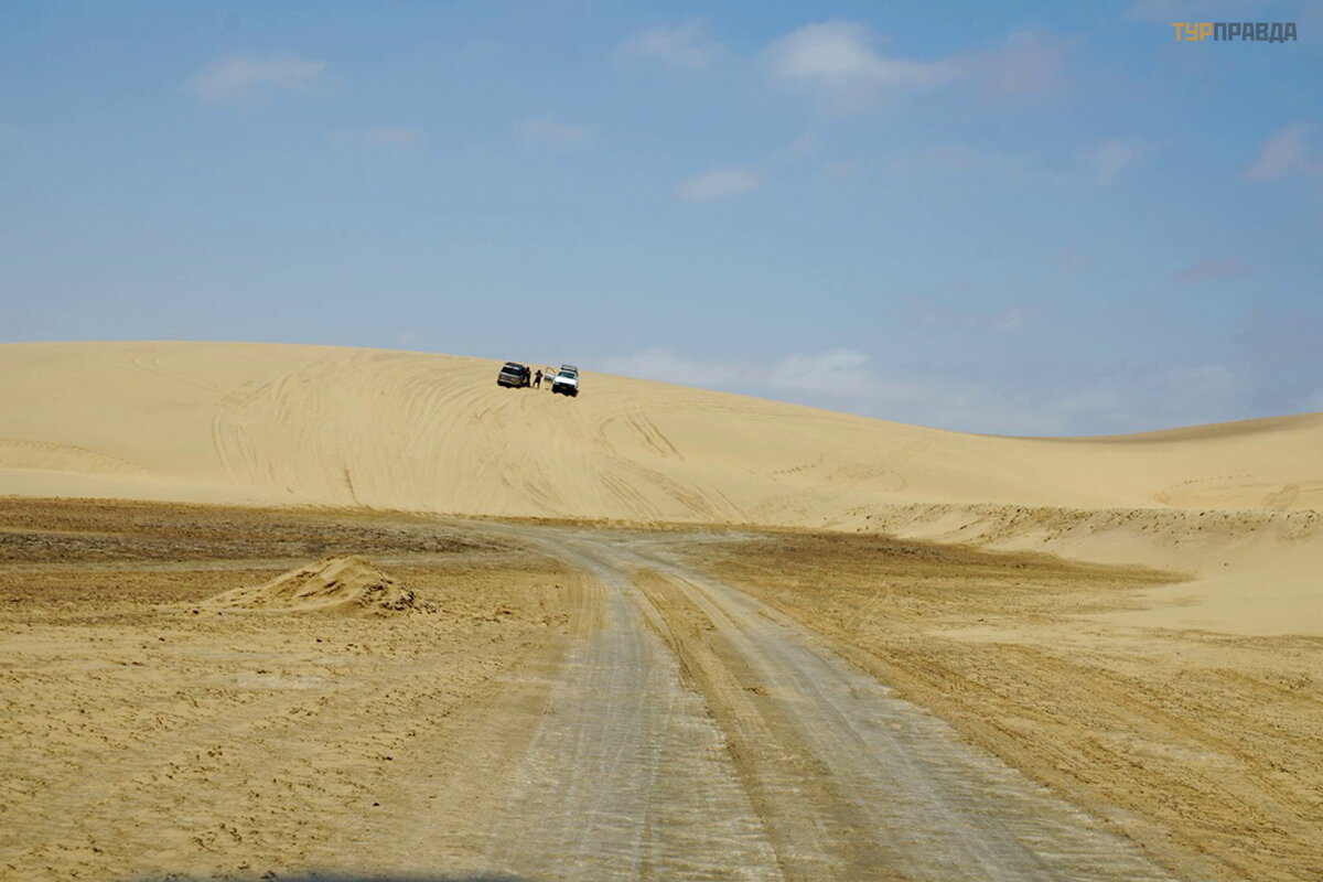 Po kelionė s jū ra per Atlantą mano kelionė tę sė si dž ipu į pietus nuo Namibijos 100 kilometrų . Važ iavome daugiau nei valandą tiesiai palei Atlantą smė lė tu krantu. Nuostabus automobilis Nissan. Pakeliui sustojome penkių minuč ių apž valgai. Kelyje buvo vieniš os katė s. Kai jiems buvo praneš ta, jie atsakė nepatenkinti. Buvome suporuoti su kitu „Nissan“. Vairuotojai nuolat palaikydavo ryš į radijo ryš iu, juokaudavo vienas su kitu. Namibijos smė lio peizaž ai – nepaprasti. Penkias valandas keliavome per Namibijos smė lį ir kopas. Nusileidimai nuo kopų buvo labai baisū s. Automobilis tapo beveik vertikalus, o paskui trū ktelė jo ž emyn ir aukš tyn. Po trijų valandų sustojome pietauti š ampano. Naujieji metai tę sė si. Vė l teko iš gerti pusantro butelio š ampano, kurio skonis geras. Tarp merginų buvau vienas, tad š ampaną teko gerti visiems vienam. Kai temperatū ra aukš tesnė nei + 40 laipsnių , š altas š ampanas ir net skanus geriamas lengvai ir daug. Už kandž iai buvo gausū s, skanū s ir į vairū s. Š is piknikas buvo skirtas paskutiniam sustojimui palei Atlanto vandenyno pakrantę . Tada mū sų kelias ė jo atgal per Namibijos smė lio kopas.