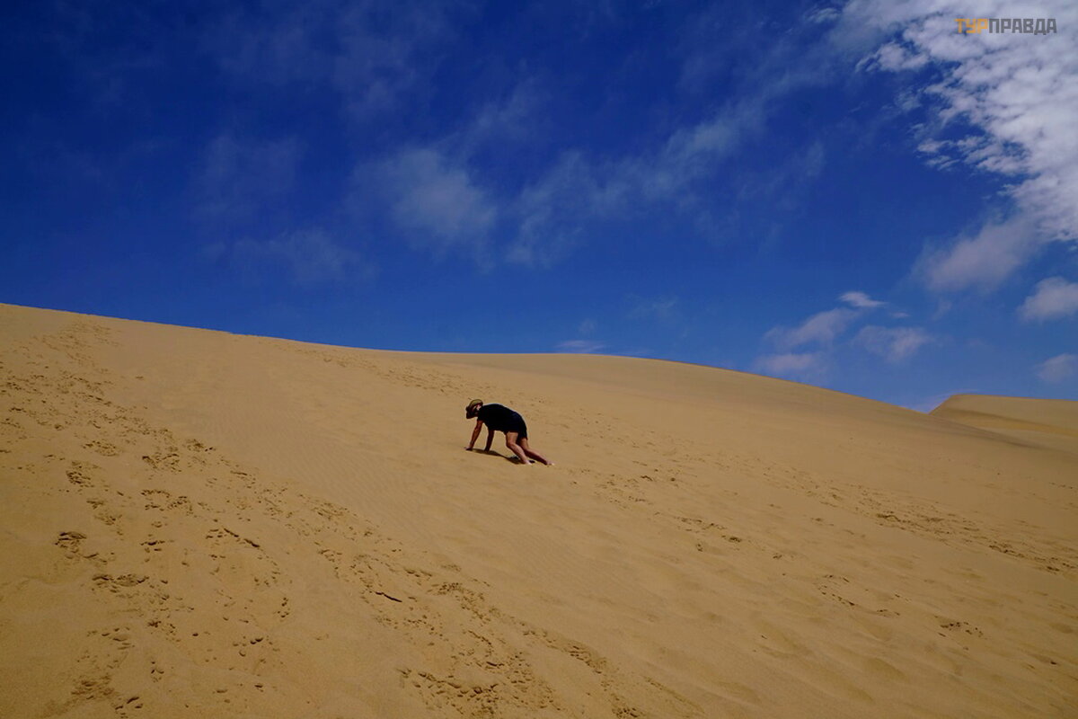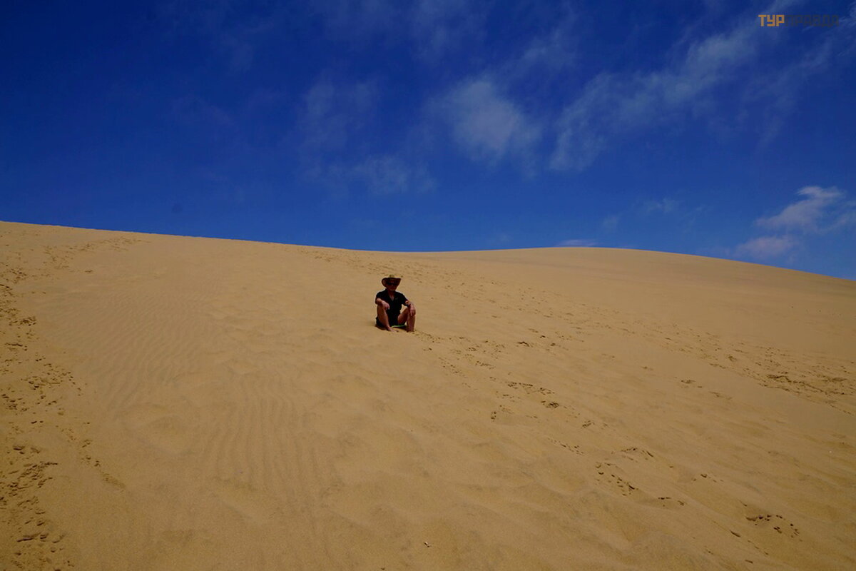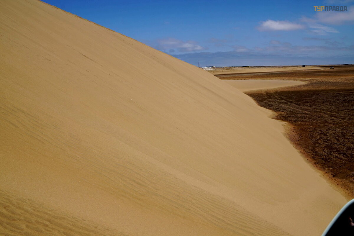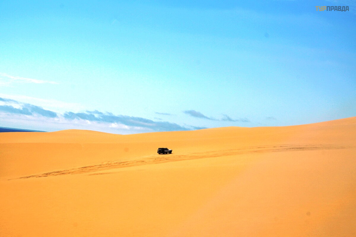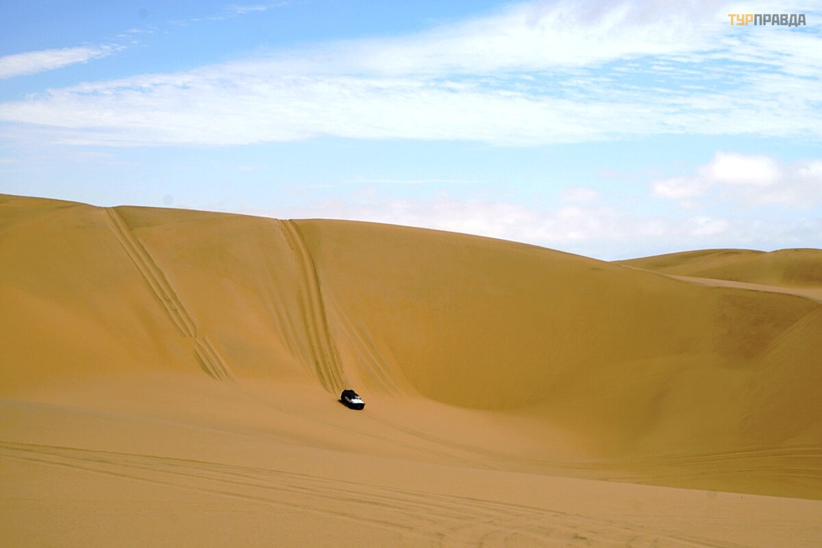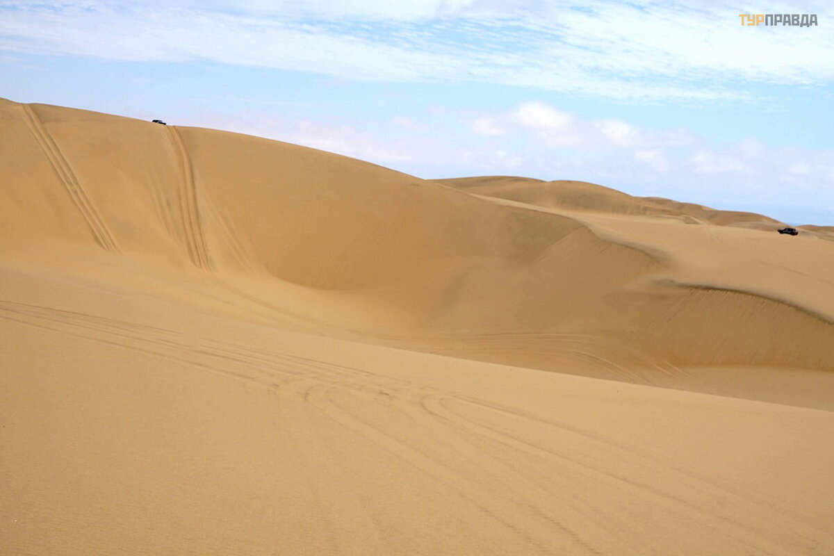 Po kelionė s jū ra per Atlantą mano kelionė tę sė si dž ipu į pietus nuo Namibijos 100 kilometrų . Važ iavome daugiau nei valandą tiesiai palei Atlantą smė lė tu krantu. Nuostabus automobilis Nissan. Pakeliui sustojome penkių minuč ių apž valgai. Kelyje buvo vieniš os katė s. Kai jiems buvo praneš ta, jie atsakė nepatenkinti. Buvome suporuoti su kitu „Nissan“. Vairuotojai nuolat palaikydavo ryš į radijo ryš iu, juokaudavo vienas su kitu. Namibijos smė lio peizaž ai – nepaprasti. Penkias valandas keliavome per Namibijos smė lį ir kopas. Nusileidimai nuo kopų buvo labai baisū s. Automobilis tapo beveik vertikalus, o paskui trū ktelė jo ž emyn ir aukš tyn. Po trijų valandų sustojome pietauti š ampano. Naujieji metai tę sė si. Vė l teko iš gerti pusantro butelio š ampano, kurio skonis geras. Tarp merginų buvau vienas, tad š ampaną teko gerti visiems vienam. Kai temperatū ra aukš tesnė nei + 40 laipsnių , š altas š ampanas ir net skanus geriamas lengvai ir daug. Už kandž iai buvo gausū s, skanū s ir į vairū s. Š is piknikas buvo skirtas paskutiniam sustojimui palei Atlanto vandenyno pakrantę . Tada mū sų kelias ė jo atgal per Namibijos smė lio kopas.