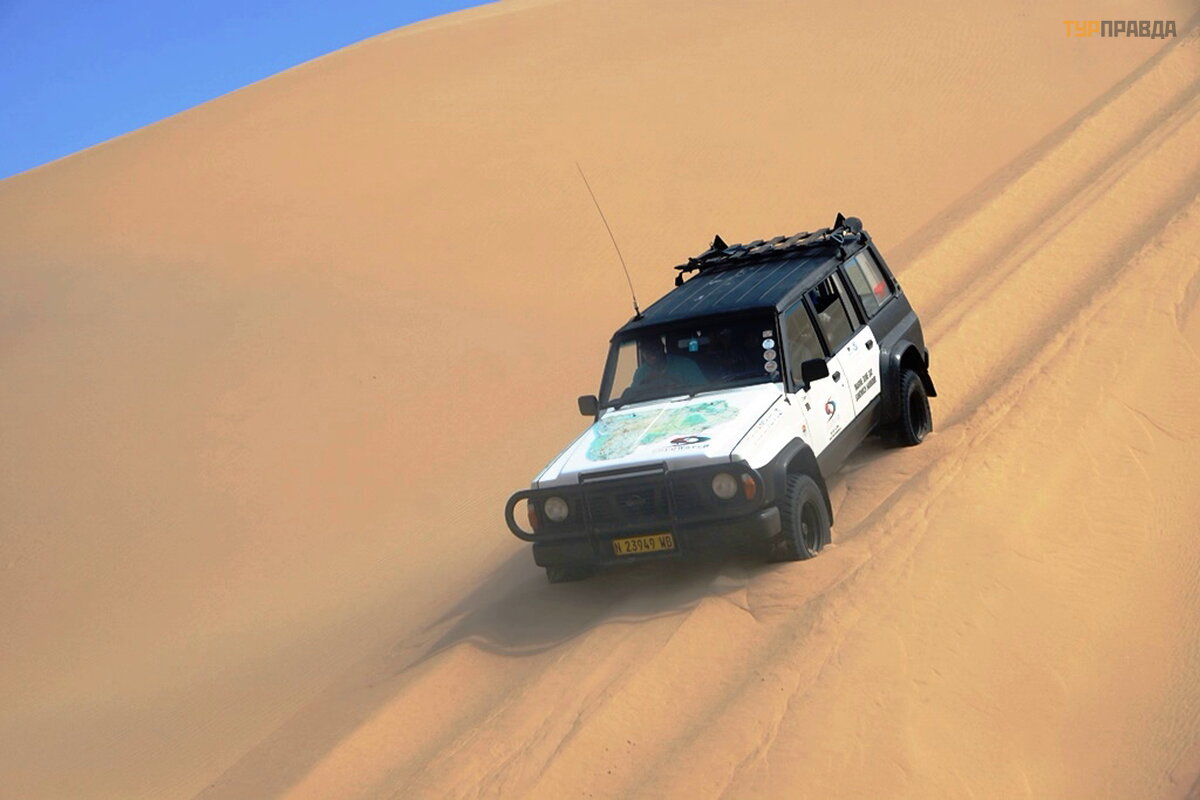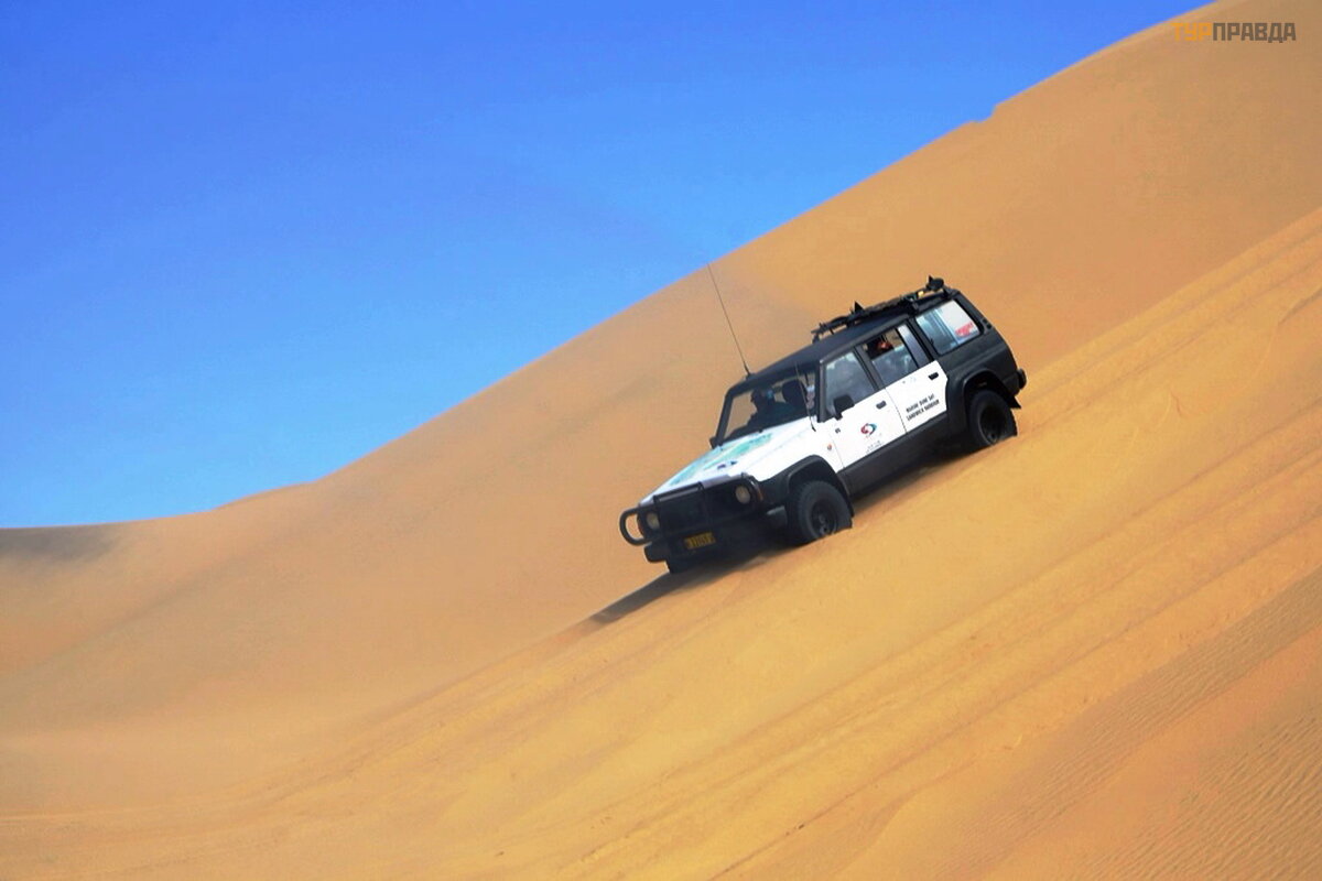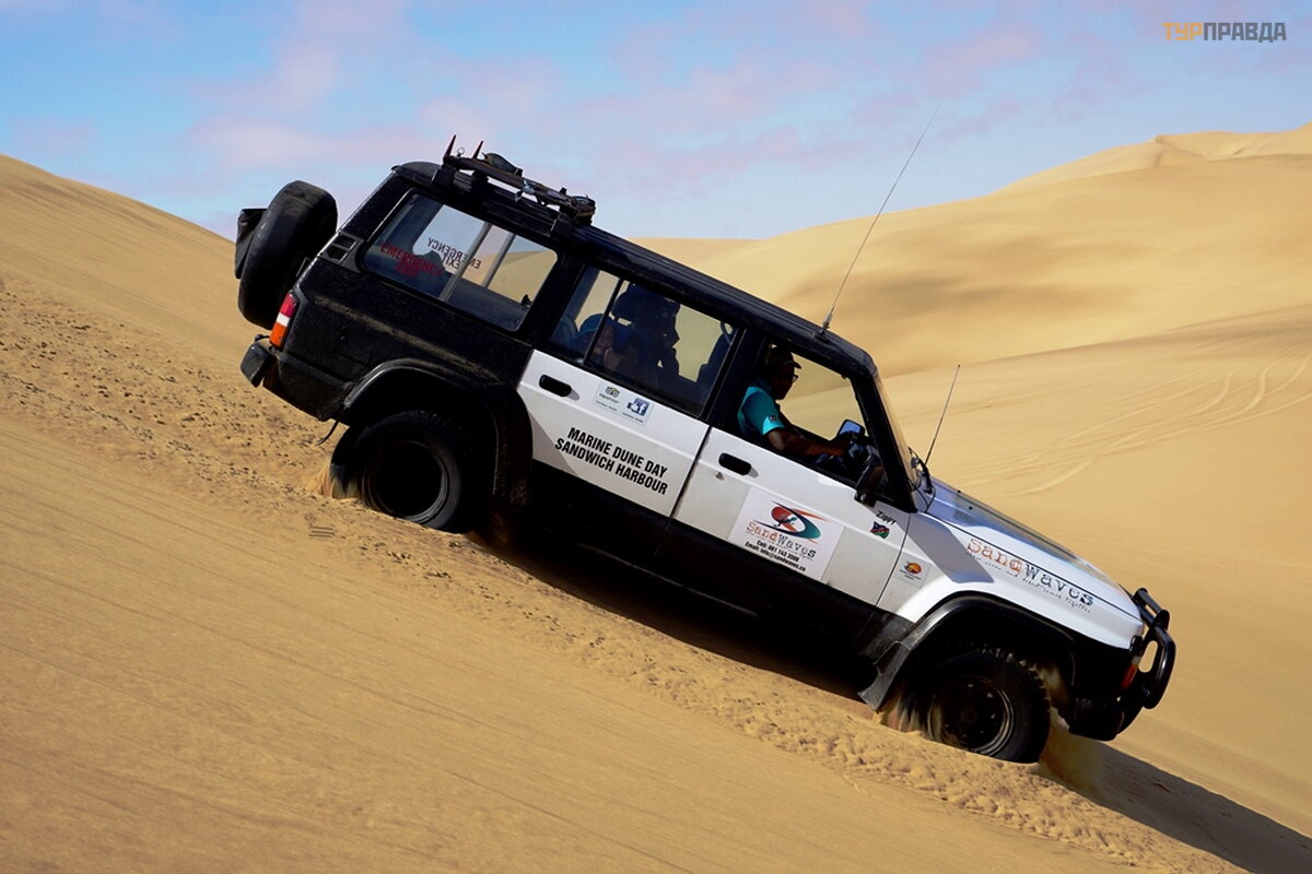 Safariai Namibijos smė lyje ir kopose tokie į domū s, kad teko tę sti fotosesiją . Nesitikė jau, kad kopų ž ygis bus baisus. Vairuotojas-gidas Johnas lenktyniavo su savo „Nissan“ su mumis kaip lenktynė se Paryž ius–Dakaras. Merginos svirduliavo, o mano š irdis dauž ė si iki kulnų . Dideliu greič iu dž ipas nuskrenda į kopos keterą , sklando ore priekiniais ratais, o tada linkteli ir lekia ž emyn. Tai kaž koks neapsakomas ekstremalumo jausmas. Visą gyvenimą tokio safario neturė jau. Tiesa, pamenu Karakumo dykumą , kai važ iavome naujutė laič iais Ž igulių aš tuonetais, bet nebuvo taip baisu, bet smė lis mus su maš inomis galė jo nuneš ti visiš kai iki pat stogo. Namibijos smė lis ir kopos yra bene didingiausi ir didž iausi š alyje. Karš ta, bet ant kopų smė lis kaip karš toje keptuvė je. Jonui porą kartų nepavyko už lipti į kopos virš ū nę , o paskui atsitraukė me, o tai ne maž iau baisu. Pravaž iavome druskos telkinius. Į spū dingas. Skaič iau, kad mū sų elniams tundroje druskos neuž tenka, bet č ia jos apstu. Nepavyko pamatyti flamingų pulkų . Jie kaž kur skrido. Gaila, nors flamingų jau pakankamai mač iau. Ant kopų buvome jo tankmė je, tad visi gyviai pasislė pė smė lyje, nors mač iau tik skirtingus pė dsakus. Mano safaris baigė si saugiai, nors galė jo kelis kartus apvirsti. Dar kartą į sitikinau, kad Namibija – graž i š alis ir ją bū tina pamatyti. Labai norė č iau dar kartą iš gerti to š ampano.