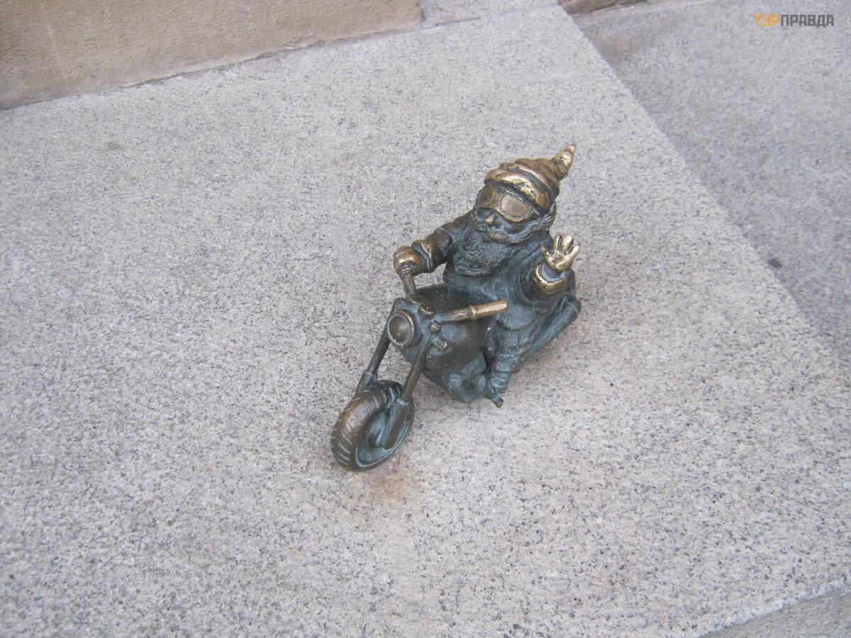 Да и сейчас найти их не так легко, сделаны они из бронзы, их размер всего лишь 20-30 см, и находиться они могут в самых неожиданных местах, — на земле, на столбах, на стенах, на подоконниках, в фонтанах и т. п. Во Вроцлаве даже продаются специальные наборы для поиска гномов, в которые входят мягкие тапочки, чтобы не спугнуть гномов, лупа, чтобы получше их разглядеть, и мазь для спины, чтобы облегчить страдания туристов, проходивших согнувшись весь день в поисках гномиков.