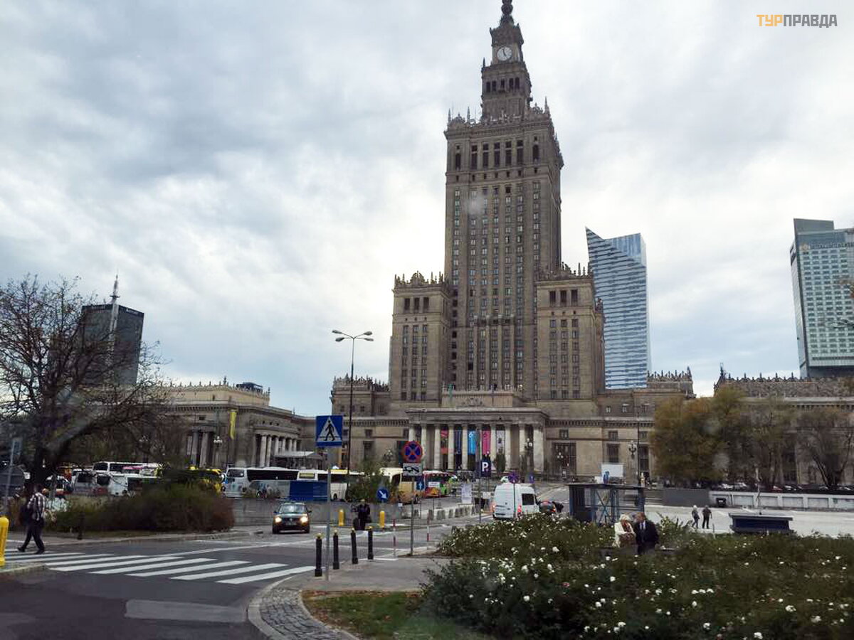 Į Lenkijos sostinę atvykome apie 16 val. Labai graž us miestas! Ir mes gyvensime, nors ir maž iau nei dvi dienas, bet pač ioje jos š irdyje. Mū sų butai pasirodė maž i, maž i, bet naujame name ir su graž ia automobilių stovė jimo aikš tele, į kurią savo ū giu vos neį sispaudė me.