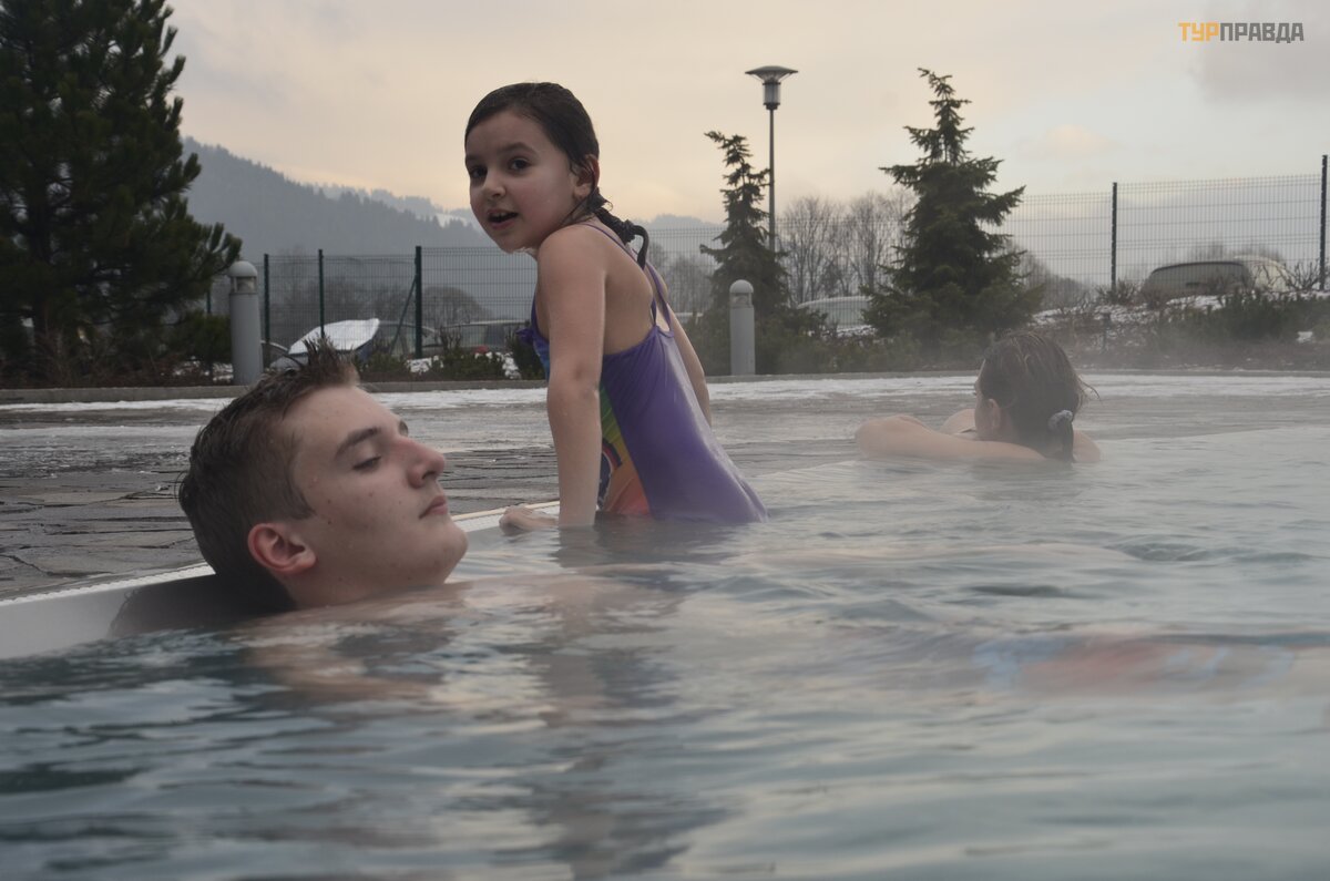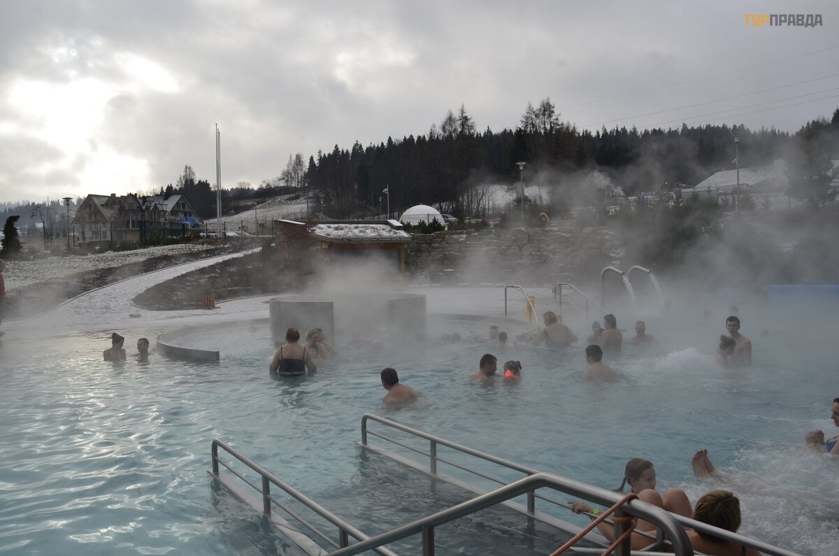 Palanki vieta š alia slidinė jimo trasų už tikrina nuolatinį didelį lankytojų skaič ių . Viduje teritorija suskirstyta į kelias zonas: aktyvią ją , kur yra č iuož yklos ir vaikų zona; poilsio zona ir vonios zona. Sutaupė me bilietus į pirmus du. Norė č iau atkreipti dė mesį į aukš tą vandens temperatū rą komplekso baseinuose, todė l po 20-30 minuč ių vieš nagė s virstate virta ž uvimi su noru atsigaivinti. Prie to prisideda lauko baseinai.