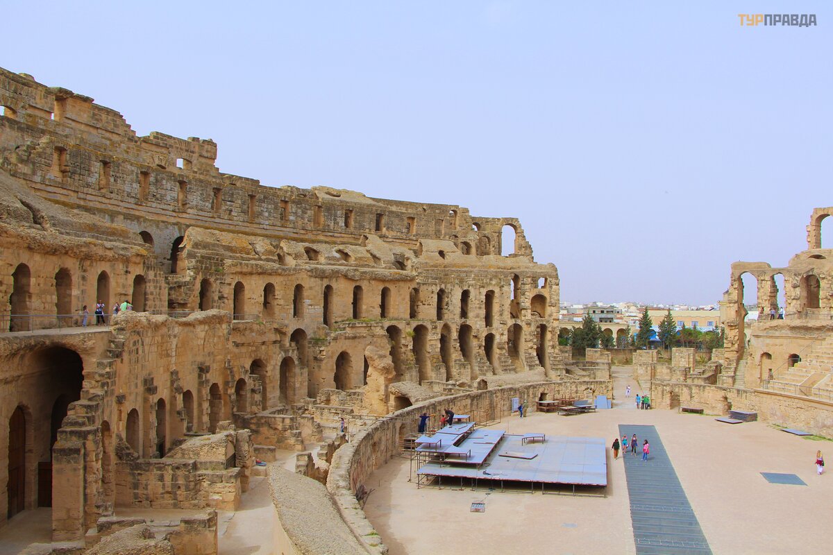 А – К сожалению, наша поездка длилась всего 8 дней, поэтому львиную долю достопримечательностей нам посетить не удалось по бональной причине нехватки времени и довольно внушительного перечня предлагаемых экскурсий, но намеченную программу минимум мы выполнили. Самое желаемое и запоминающееся это 2х дневная поездка в Сахару с посещением многих интересных мест по дороге. Сначала мы посетили Колизей, тунисский Колизей, наиболее хорошо сохранившийся из всех построенных во времена Римской Империи и 4й по размеру из всех существующих.