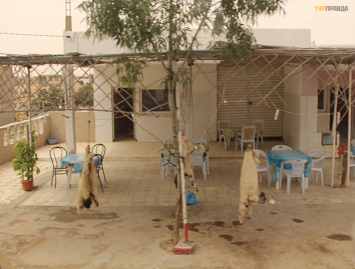 Затем мы отправились на юг страны в сторону пустыни, по дороге заехав в город скульптур, к сожалению, не помню его названия. Далее, по ходу продвижения вглубь страны пейзажи меняется, оливковые рощи сменяет более редкая растительность, которая в свою очередь уступает место пустынным пейзажам. Так же очень запомнилось небольшое селение, в котором возле каждого дома висели туши и шкуры баранов, люди готовились к какому-то мусульманскому празднику.