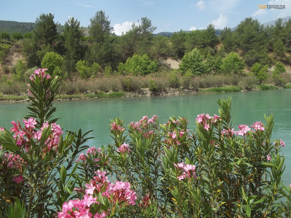 Kemere susirinkę daugiau daugiakalbių ž monių , riedė jome jau ž inomu keliu. Tač iau į kalnus pasukome kiek anksč iau, dar nepasiekę Manavgato. Taip! Kalvos č ia gana ž emos. Bū tent, mū sų laukia plokš č ia upė !