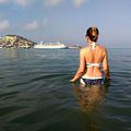 Prieš ais vieš butį esantis paplū dimys vadinamas Unimpeded, esantis į lankoje, todė l jū ra visada rami, dugnas smė lė tas, akmenys visi iš vež ti, plū durų gylis iki kaklo. Maudytis ė jome tik ryte, kol turistų buvo maž ai, o jū ra buvo skaidri ir š vari. Po pietų jū ra purvina, daug turistų , daugiausia turkų . Smė lis paplū dimyje valomas maš ina, yra stacionarū s skė č iai su vytelė mis, plastikiniai gultai, duš as, tualetas, persirengimo kabinos.