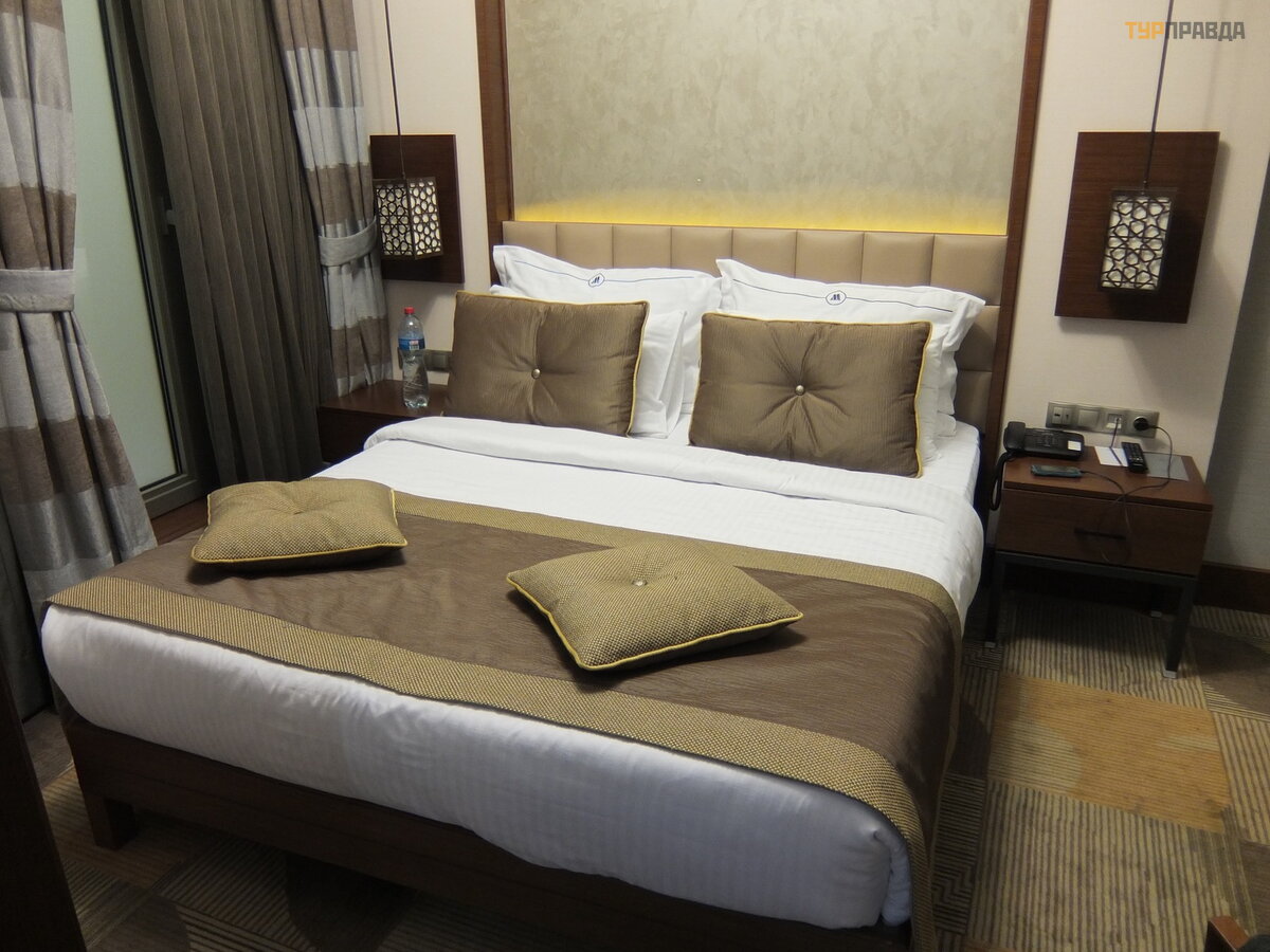 Eime į registratū rą . Apskritai po pusvalandž io pykč io suprantame, kad kalti ne turkai, o už sakymo svetainė . Vieš butyje nė ra „Standartų “, o tik „Ekonomika be lango“ ir „Liuksas su langu“. Tač iau tarpininko („Ostrovok. ru“) turinio valdytojai sugalvojo treč io tipo kambarį , š iek tiek brangesnį už ekonominį kambarį ir „su langu“. Dė l to Ostrovok grą ž ino mums kambario kainų skirtumą , ir mes su tuo atsiskaitė me.