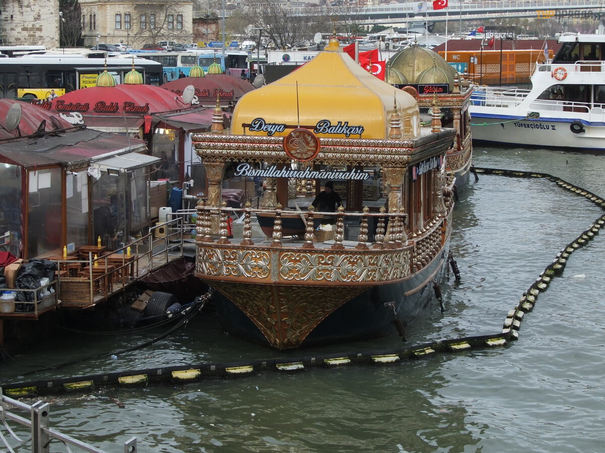 Mū sų nardymas į vyko pirmą vakarą . Nuė jome iki Galatos tilto, kvė pavome jū ra ir iš bandė me midijas, į darytas ryž iais. Iš didž iai paž ymė jo š alia restorano „Odesa“, bet valgė maž esniame restorane. Turkai turi drumstą gė rimą , kuris yra purpurinė s spalvos. Jis daž nai bū na meniu, bet geriau neimti, skonis panaš us į rū gš č ias burokė lių sultis, sumaiš ytas su sū rymu.
