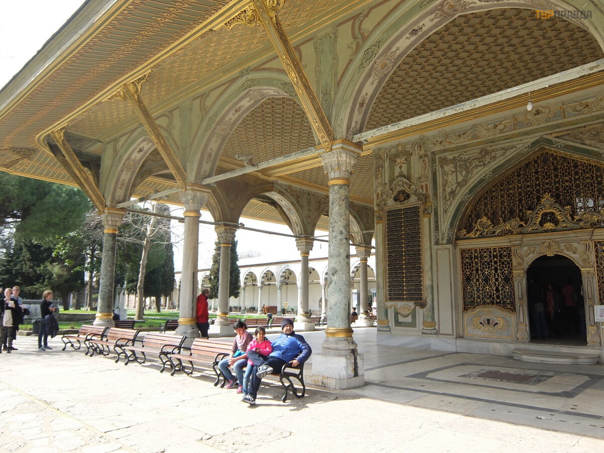 Iš ten, pro archeologijos muziejų , tiesiai į Topkapi. Ilgai ir nuobodž iai vaikš č iojome po rū mus. Negaliu pasakyti, kad man tai labai skaudė jo. Tokie rū mai su tokiu muziejumi. Muziejuose į domios dovanos, kurios buvo į teiktos sultonams – peiliai, du stambū s deimantai, stalo į rankiai. Teritorija didelė , bet europietiš kų rū mų prabangos č ia nesimato.
