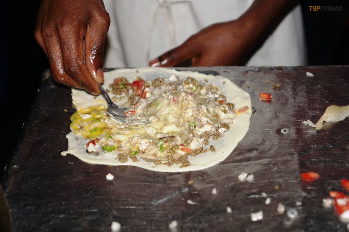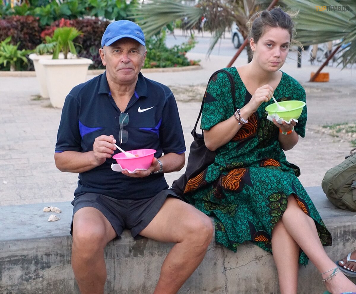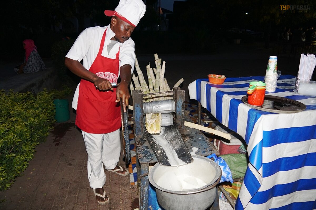После прогулки по набережной, где можно увидеть, как местные жители сами себя развлекают, я приступаю трапезе. Вначале что-нибудь морское, затем мясное в тонких блинчиках, и в заключении суп в большой чашке. Некоторые туристы могут сказать, что я ем всё наоборот. Нет, я умышлено так ем. Вначале мясное, рыбное блюдо, а затем супчик, чтобы не использовать воду или соки. Их можно употребить примерно через час после трапезы. Конечно, я всё это ем не сразу, а с перерывом на прогулку по набережной. Таким образом, у меня на ужин уходит часа три-четыре. Вот так я коротаю своё время на острове Занзибар.