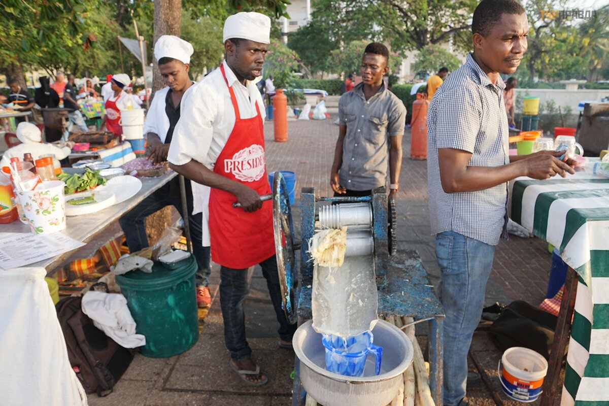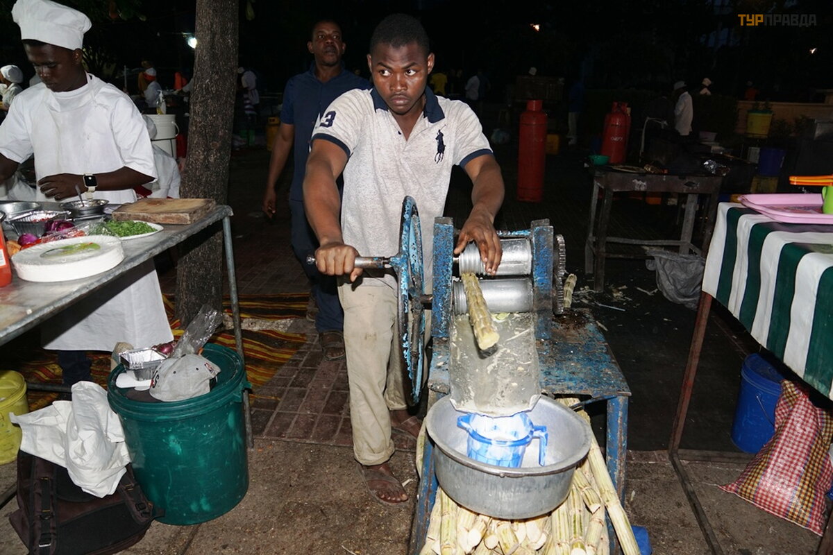 Ежедневно к вечеру, занзибарский общепит обязывает свои точки питания готовить питательные различности на набережной города. Если подойти со стороны чистоты и качества, то это тихий ужас, а если плюнуть на всё, и с голоду съесть здесь что-нибудь, то сойдёт. Экзотика! ! ! Для готовки повара используют различные источники электропитания, в основном аккумуляторы. Условий никаких, но они умудряются готовить. Сразу вспомнил такую же торговлю новороссийского общепита на различные праздники. У наших российских торгашей общепита сразу столько требований к организаторам праздничной готовки, что их легче послать куда подальше, чем выполнить их требования. Приехали бы наши повара сюда на Занзибар, и увидели, как здесь местные повара из ничего создают интерес туристов и жителей острова к поеданию всего, что они готовят. Ни одного отравления, а у наших чистоплюев иногда можно отравиться, и это при соблюдении почти всех норм санитарии.
