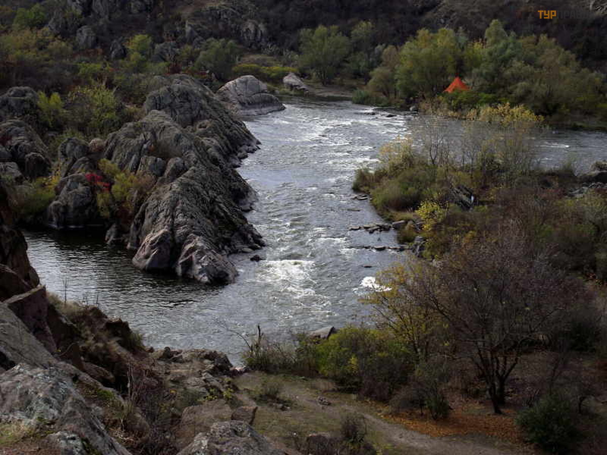 Именно так переводится с греческого название села Мигея. Это место, где равнинный и спокойный на большей части своего течения Южный Буг превращается в горную речку. Зажатый в крутых каменистых берегах образует узкую каньоноподобную долину с величественными гранитными скалами, порожистым руслом, водоворотами и островами. .