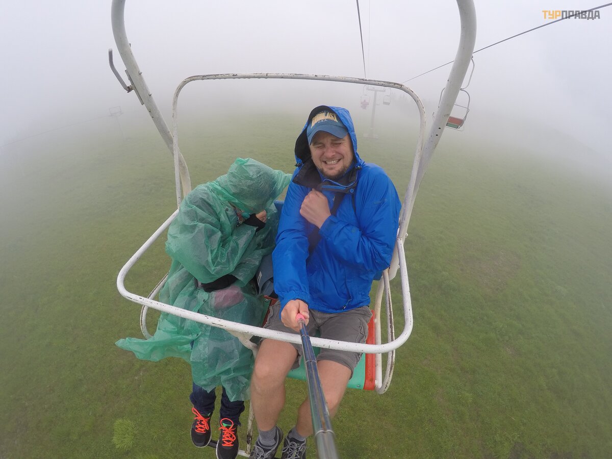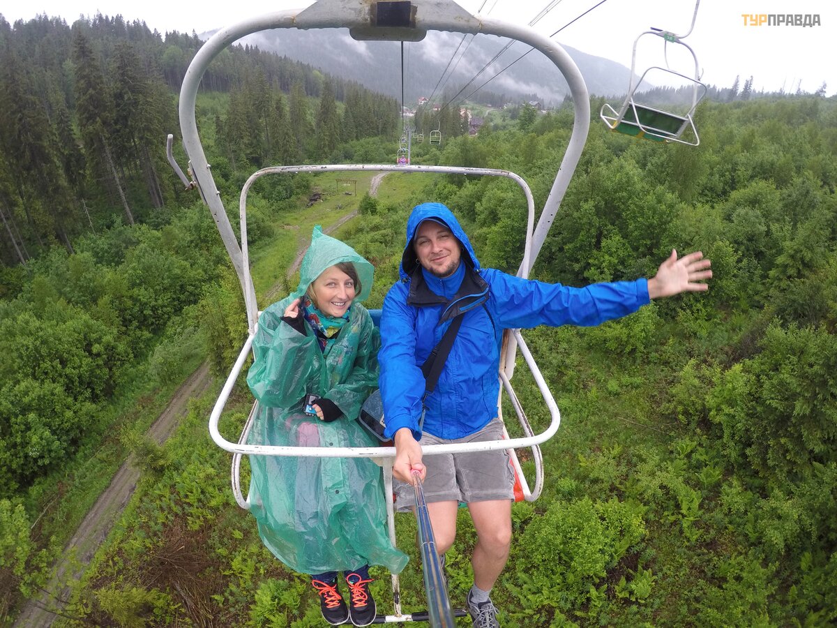 Pirmasis patikros punktas buvo liftas į Aukš tą ją kalvą ir restoranas „Zahar Berkut“ virš uje.