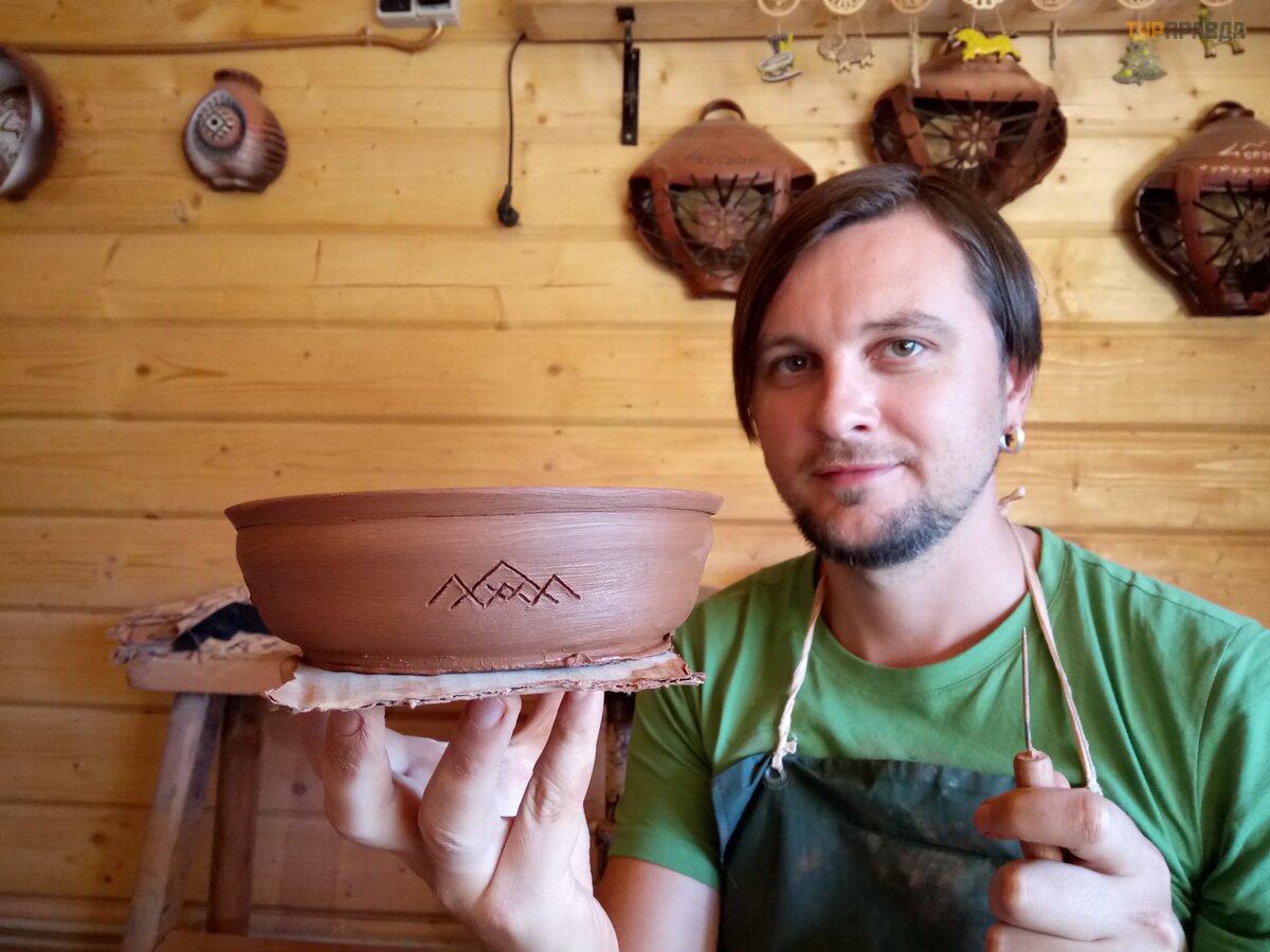 Beje, apie molines lė kš tes. Mus mokė , kaip daryti tokius dalykus. Iš molio padariau ž irafą . O Serhijus tikrai padarė lė kš tę ant puodž iaus rato.