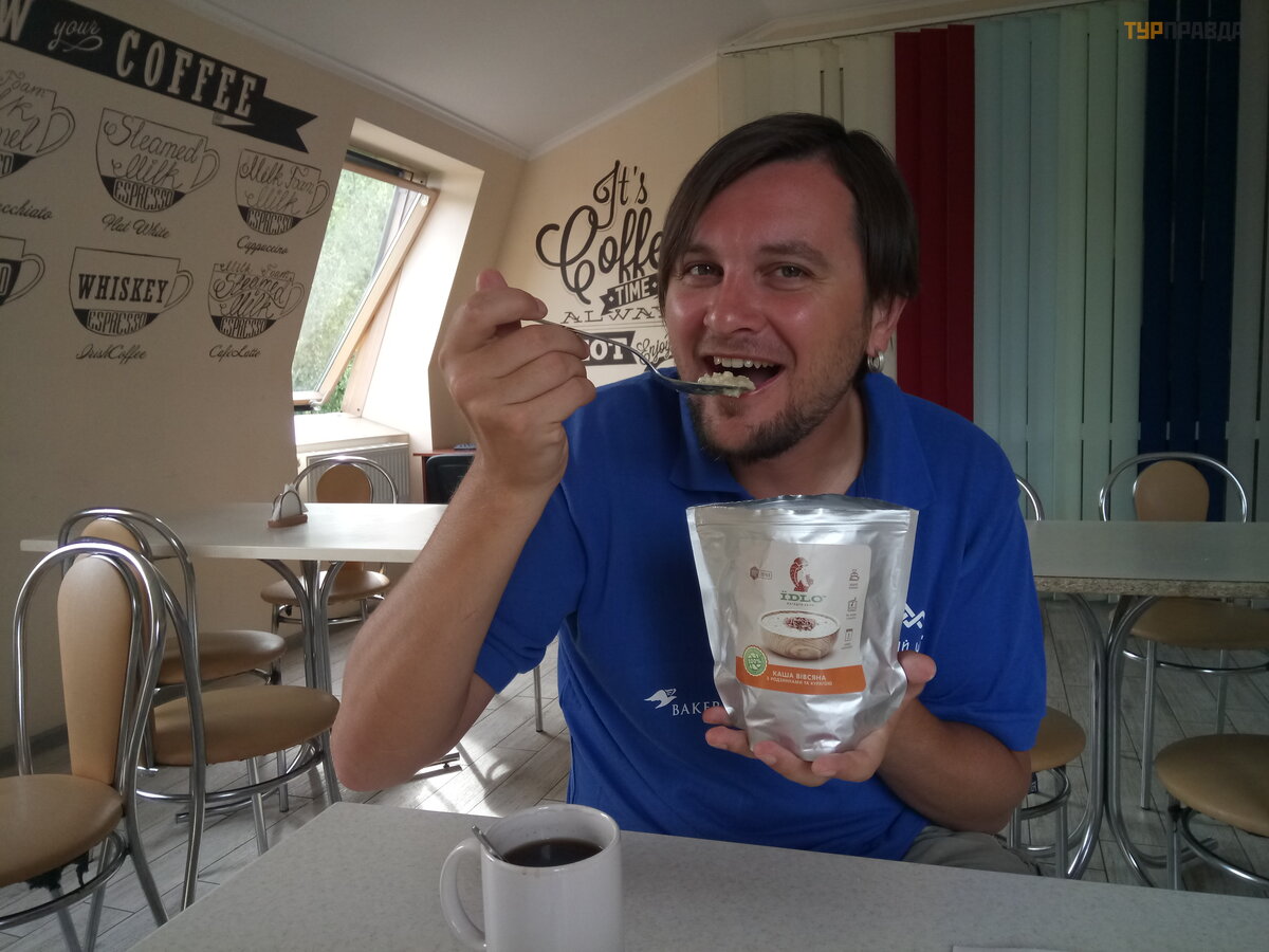 Esame pilni jė gų ir norė dami bū ti energingesni, nuė jome gaminti pusryč ių . Pusryč ius ir pietus kartais suplanuojame kavinė se, o kai jų neturime, į pagalbą ateina greitasis „Iidlo“ maistas. com ( http://iidlo. com/ ). Š iandien pirmą kartą paragavau bananų koš ė s.