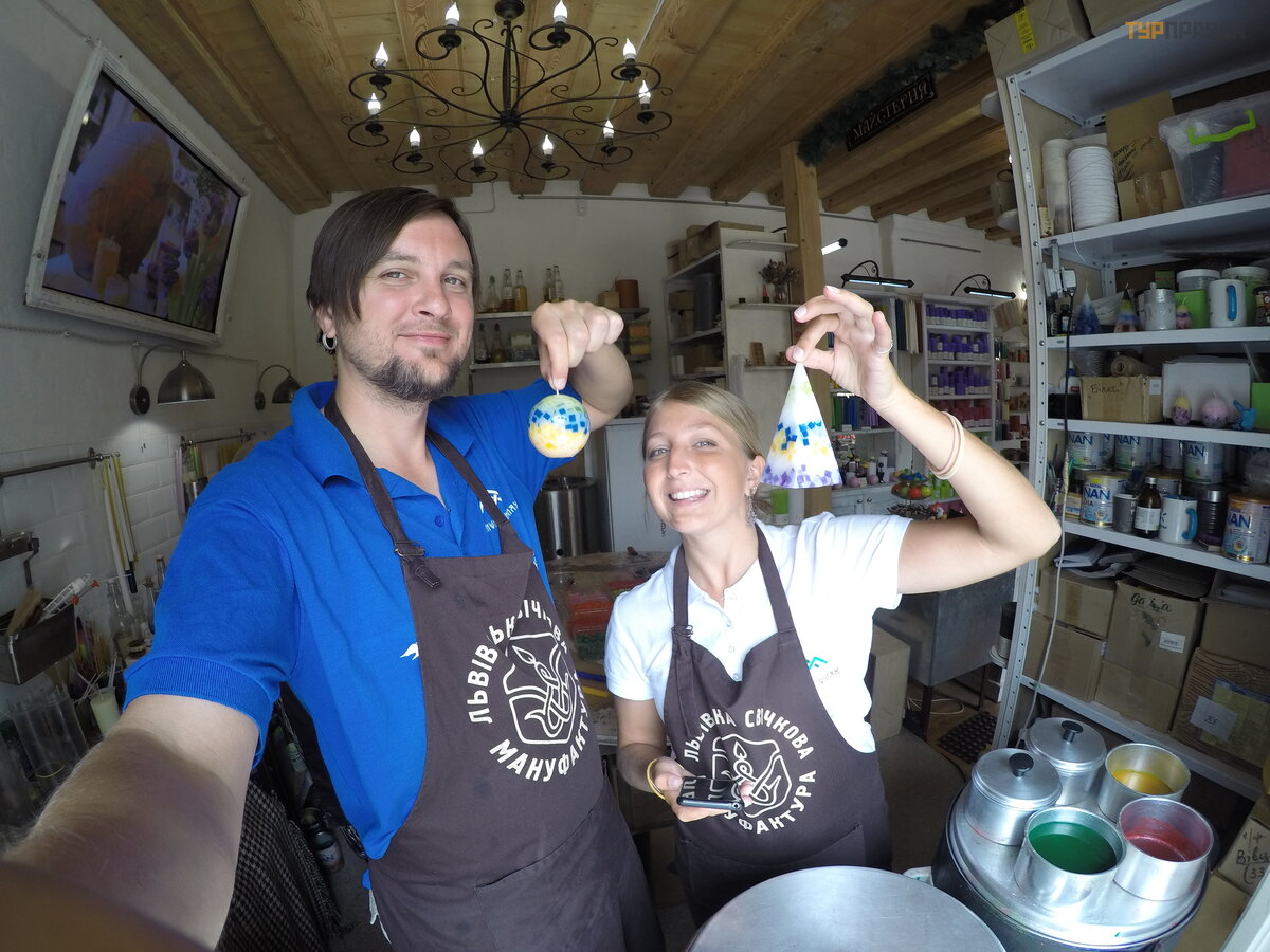 Visų pirma, mes pirmą kartą nuė jome į ž vakių gamybos meistriš kumo klasę Lvovo ž vakių manufaktū roje ( http:// www. candles) . lvovas. ua / ).