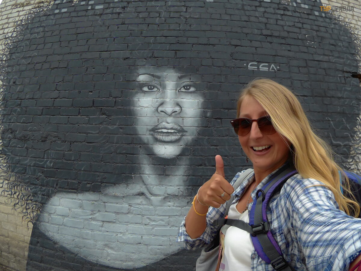 Nuė jome prie į ė jimo į miestą , ten mus pasitiko koordinatorė Anya. Iš karto prie į ė jimo yra senas muzikos fabrikas. Prieš keletą metų vyko meno festivalis, nuo tada ant namų liko freskos ir grafiti. Iš karto priminė Malaizijos miestą Dž ordž tauną su savo freskomis. Yra visokių š aunių dalykų !