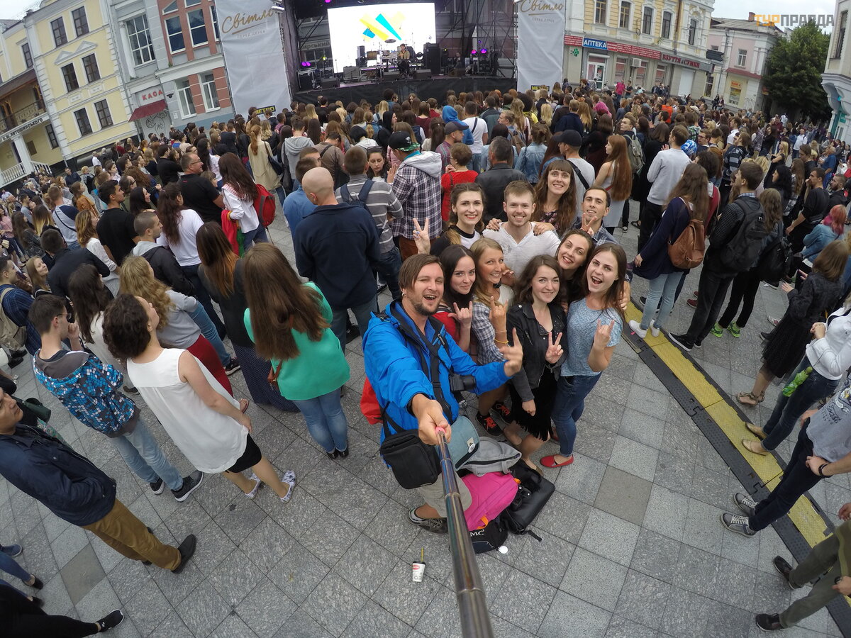 Ir baigė si mū sų pasivaikš č iojimas miesto centre, Mykhailivska gatve. Š iandien vyksta koncertas jaunų ž monių garbei. Suž inojau apie daug naujų grupių . Atsilikau nuo jaunimo tendencijų . Susitikome su vaikinais, paš okome, pasiklausė me muzikos ir vidurnaktį iš ė jome ilsė tis.
