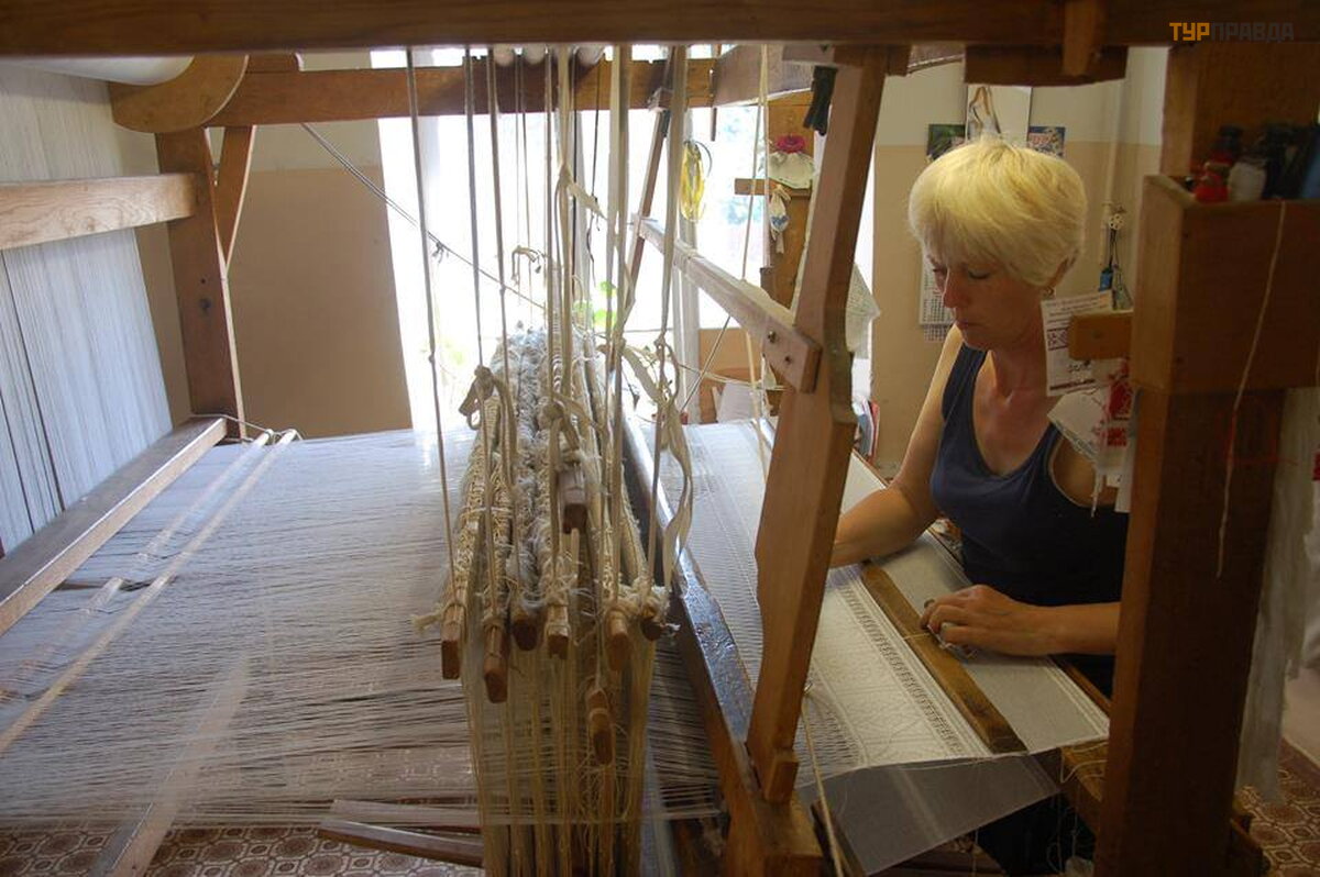 Ypatingas fabriko skirtumas – č ia ir dabar vienoje iš parduotuvių dirbama autentiš komis senomis staklė mis, iš sauganč iomis Ukrainos tradicijas ir kultū rą .