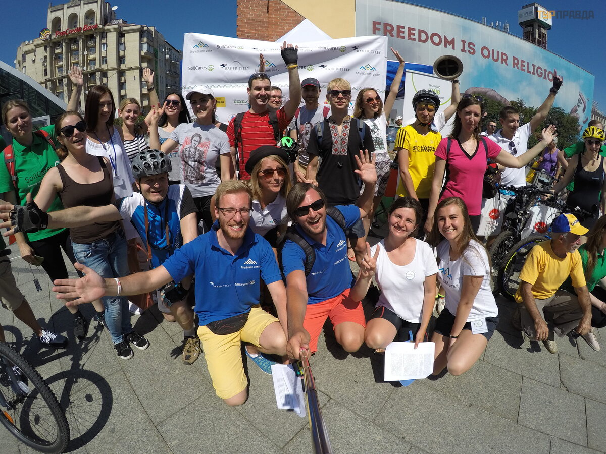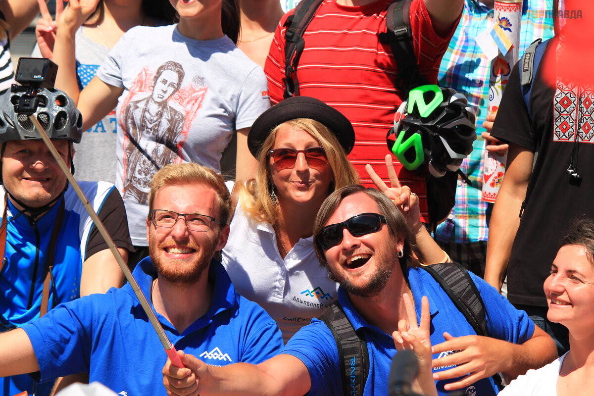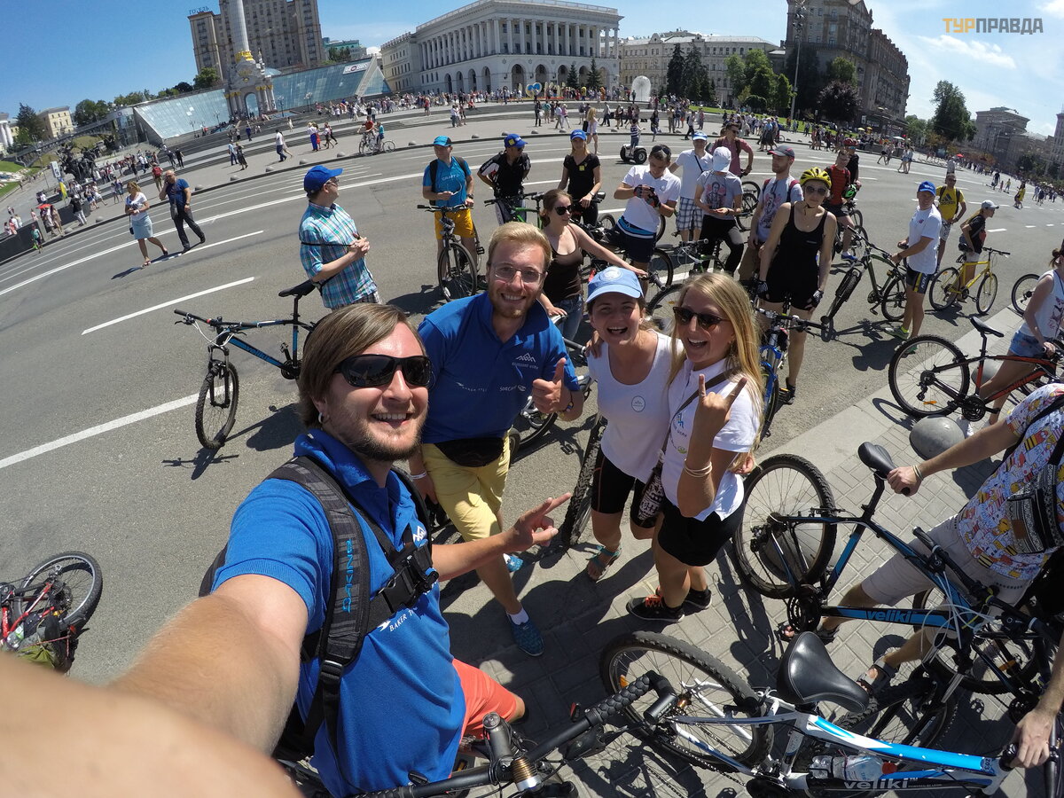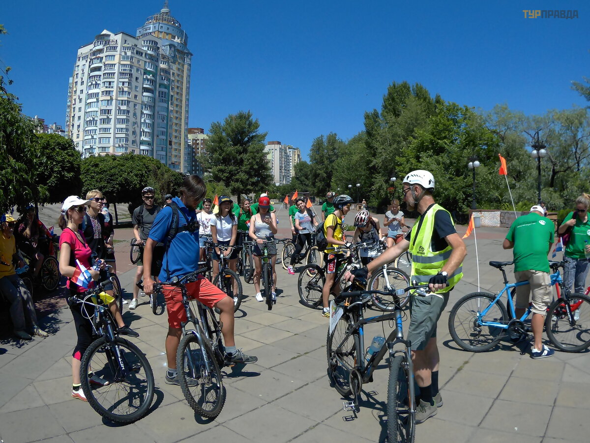 Kad mū sų lenktynė s bū tų ne tik chaotiš kas pasivaž inė jimas, o prasmingos ir saugios lenktynė s, mū sų rubriką lydė jo Kijevo dviratininkų asociacijos atstovai ( http:// avk. org ua / ) ir patrulinį automobilį .