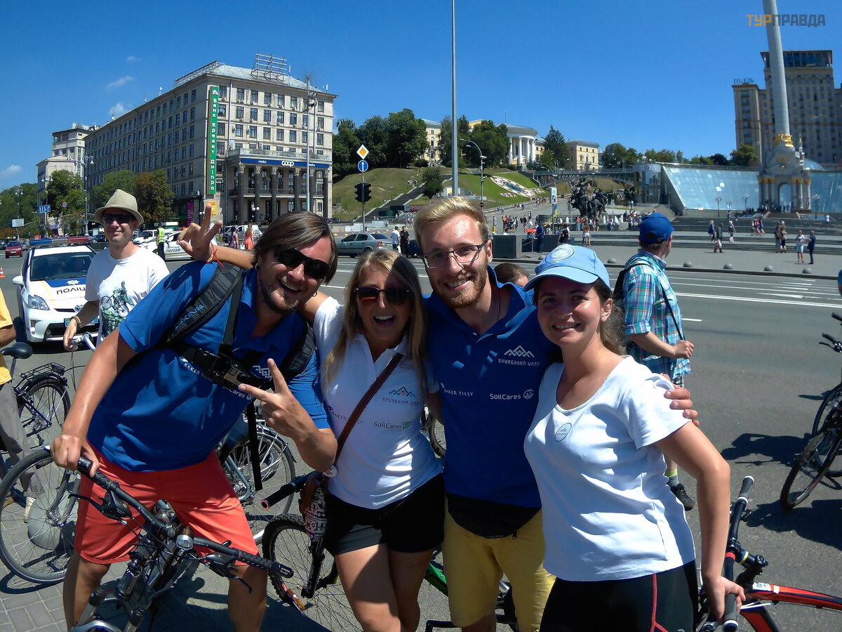 Į mū sų atvykimą susirinko apie 30 ž monių . O kas buvo š aunu, mus lydė jo SoilCares atstovai, vaikinai iš Olandijos. Ir š ie vaikinai tikrai paž į sta vienas kitą važ inė dami dvirač iais!