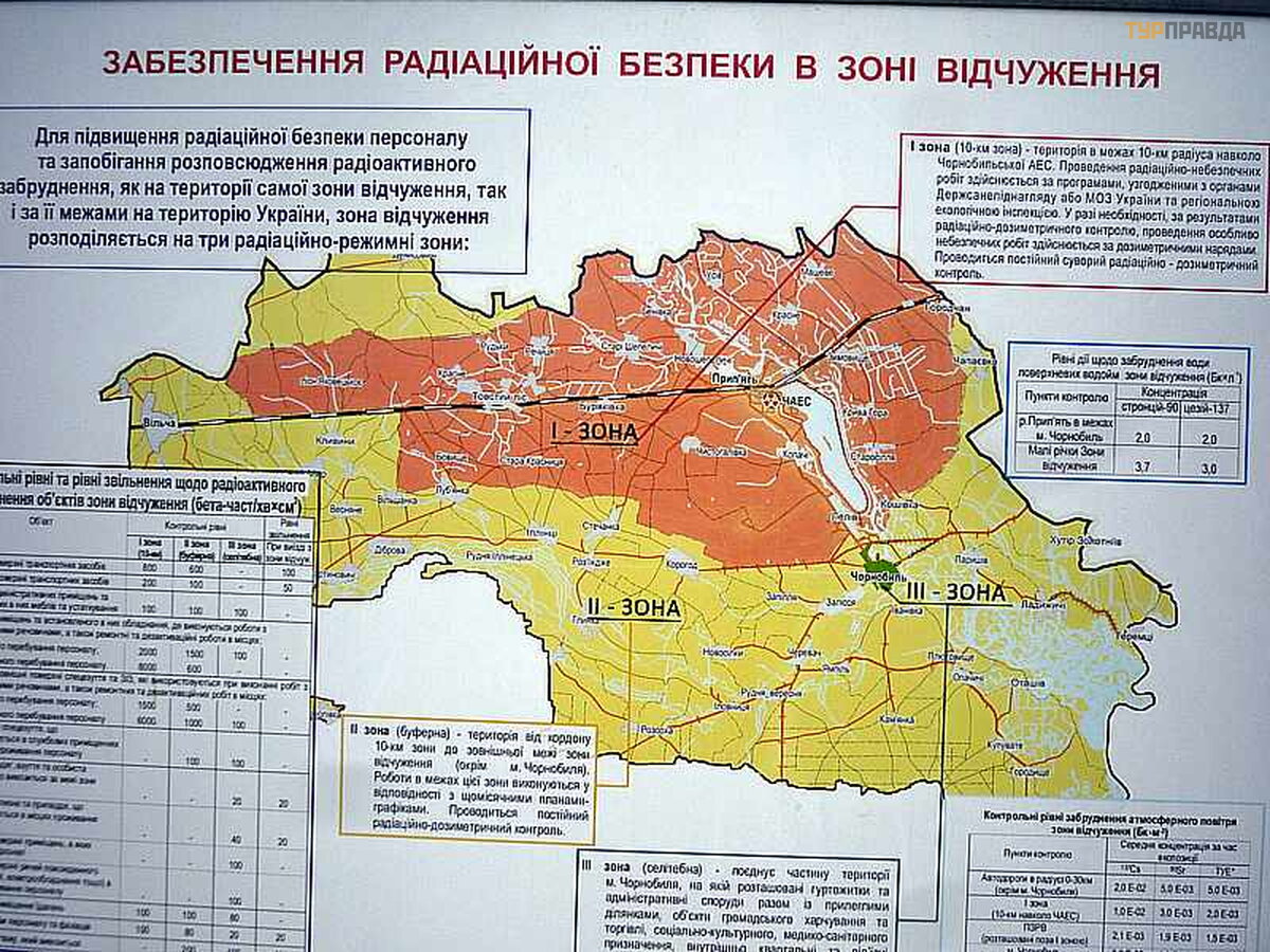 Visą š ią informaciją galima gauti iš ž emė lapių ir aiš kinamų jų tekstų dideliuose stenduose, į rengtuose š alia patikros punkto pastato. Netoliese yra firminis CHORNOBYL-TOUR firmos kioskas, nudaž ytas ryš kiai geltona spalva. To nepastebė ti tikrai neį manoma. Asortimente – suvenyrai Č ernobylio tema, maistas ir gė rimai. Jie taip pat siū lo arbatą ir kavą . Tiesiog kainos skamba. Nė ra ką veikti. Dieną su ugnimi konkurentų netoliese nerasite.