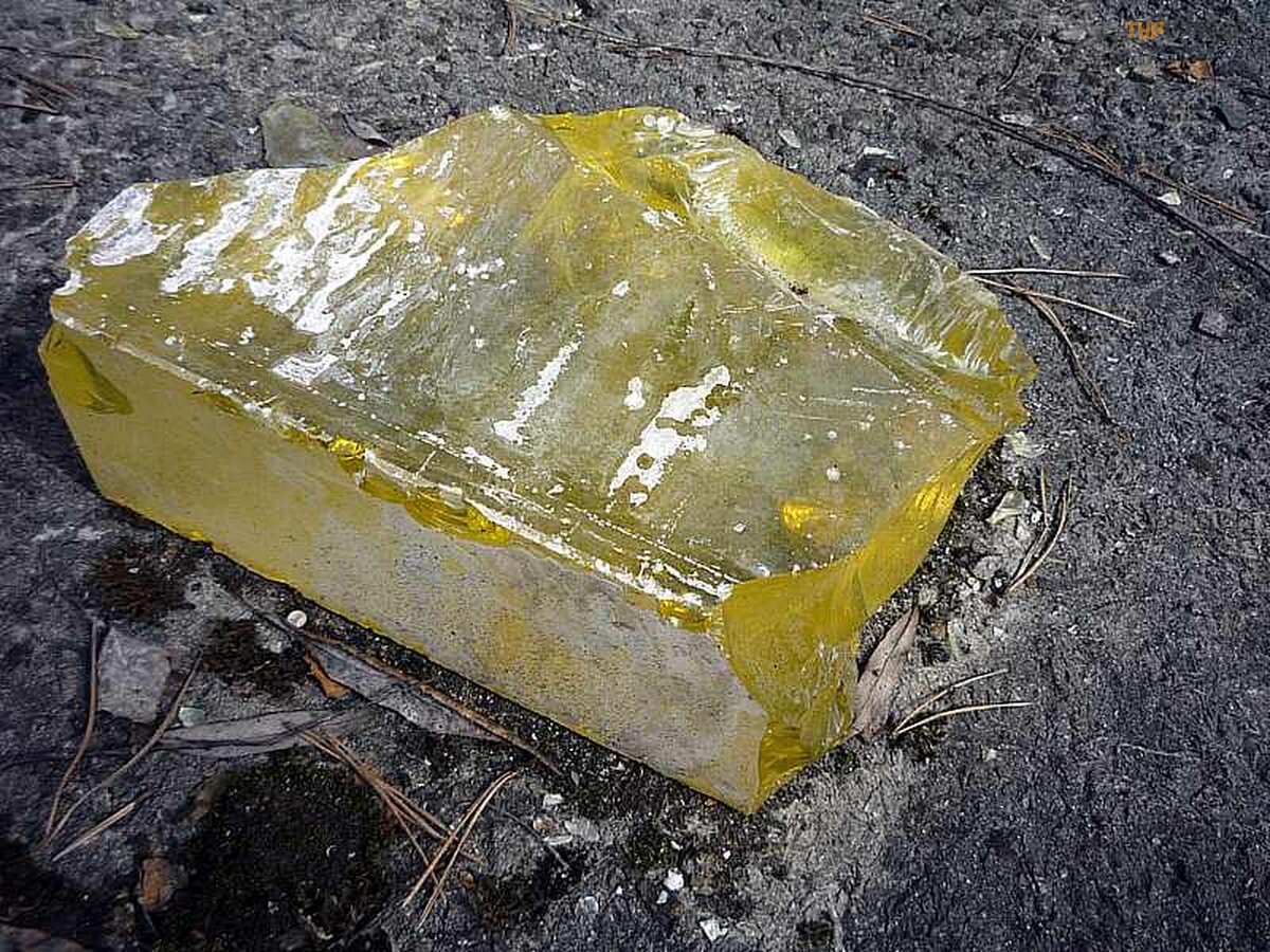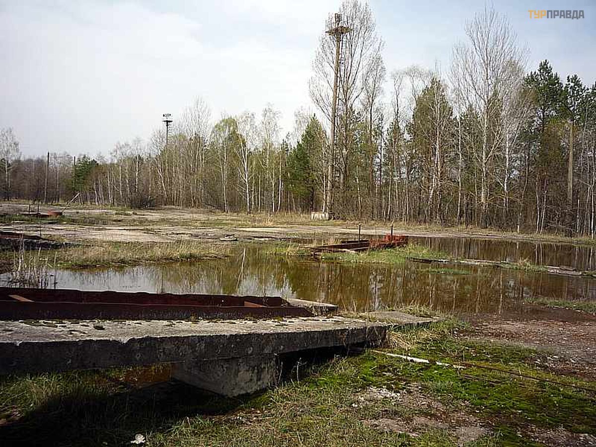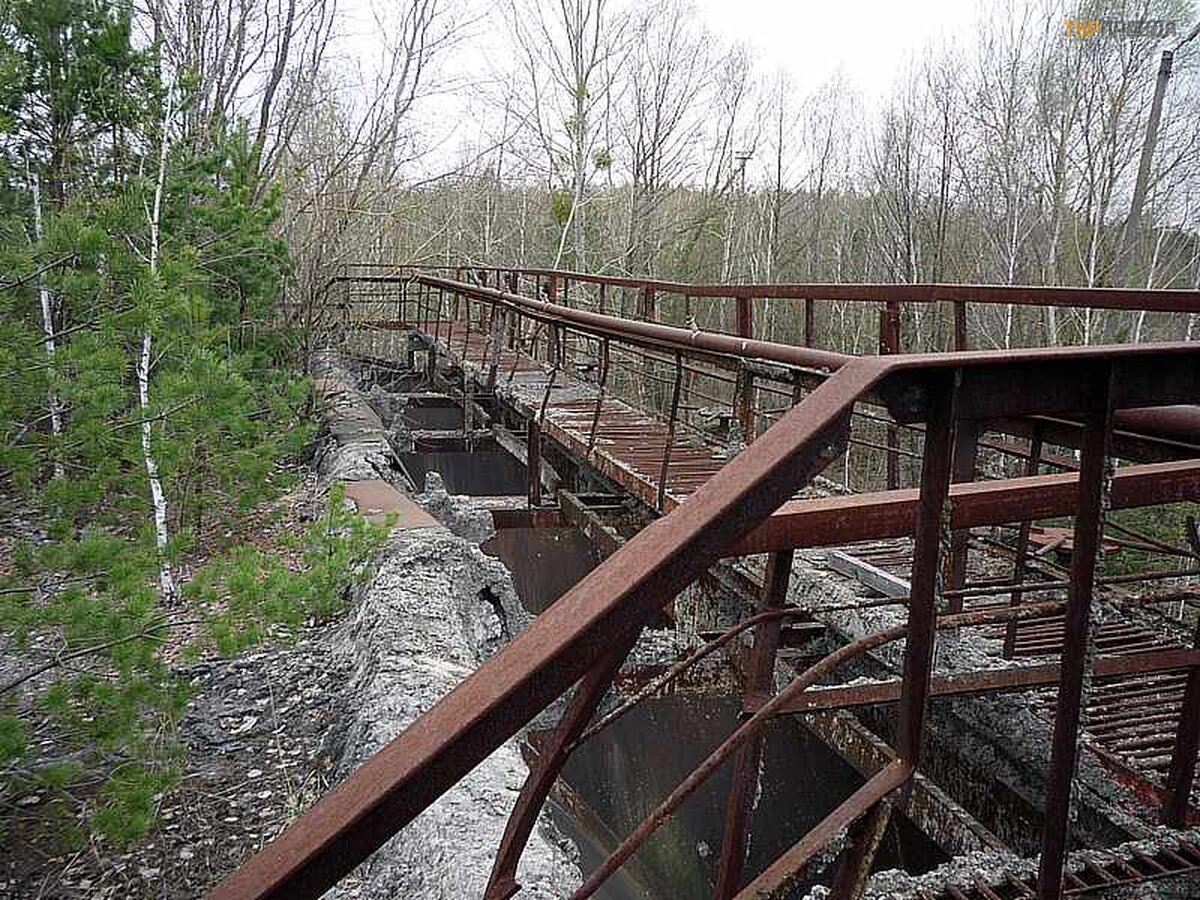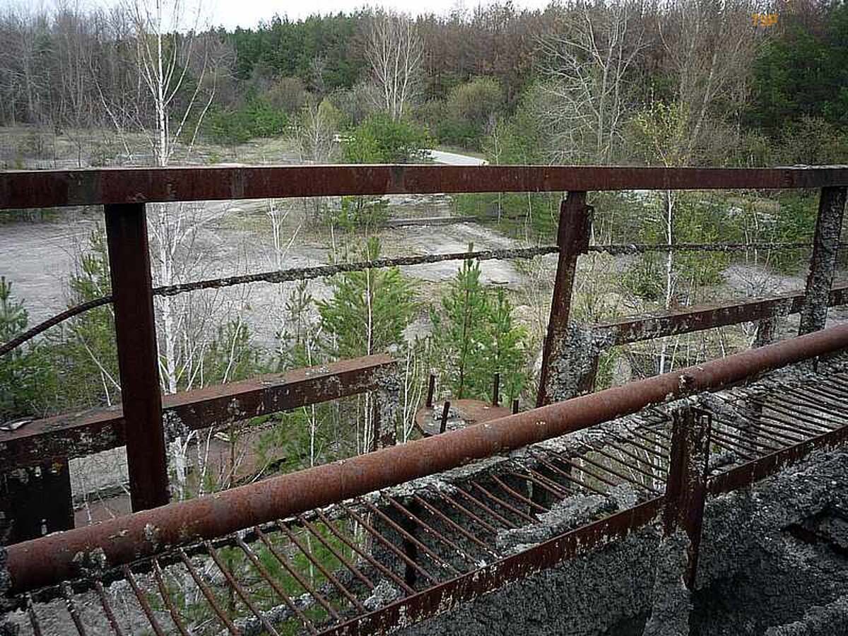 Panaš u, kad ant kalvos buvo skystų atliekų perdirbimo arba saugojimo aikš telė . Didž iulis pož eminis rezervuaras. Greič iau visas tinklas. Iš jų iš eina vamzdž iai ir š uliniai. Gelž betoninė bū da virš uje tuš č ia. Aplink guli tik iš dauž tas stiklas. Su radiacine apsauga nė ra paprasta. Gelsvos spalvos ir deš imties centimetrų storio.
