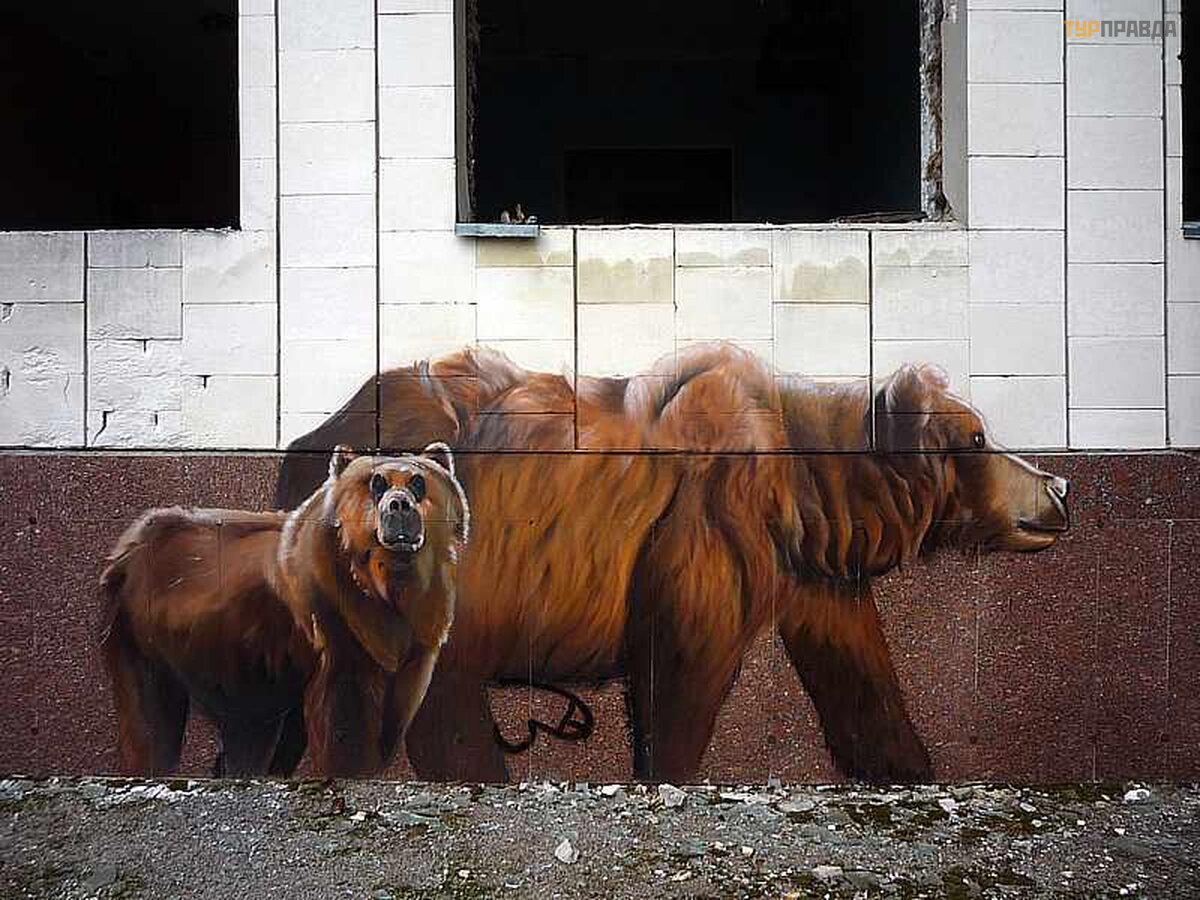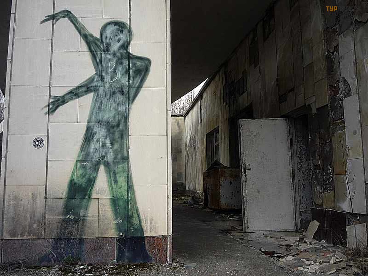 Ž velgiant pro langą tarp š ū snių kampanijos medž iagos matosi puikiai iš likę sovietmeč io vadų portretai. Ant sienų – jau modernaus laikotarpio paveikslai. Paslaptingi š eš ė liai gą sdina lankytojus. Tač iau meš ka apsaugo savo jauniklį nuo erzinanč ių ž vilgsnių . Į zoną atvykę į vairaus plauko menininkai stengiasi palikti pė dsaką istorijoje. Net jei tokiu neį prastu bū du.