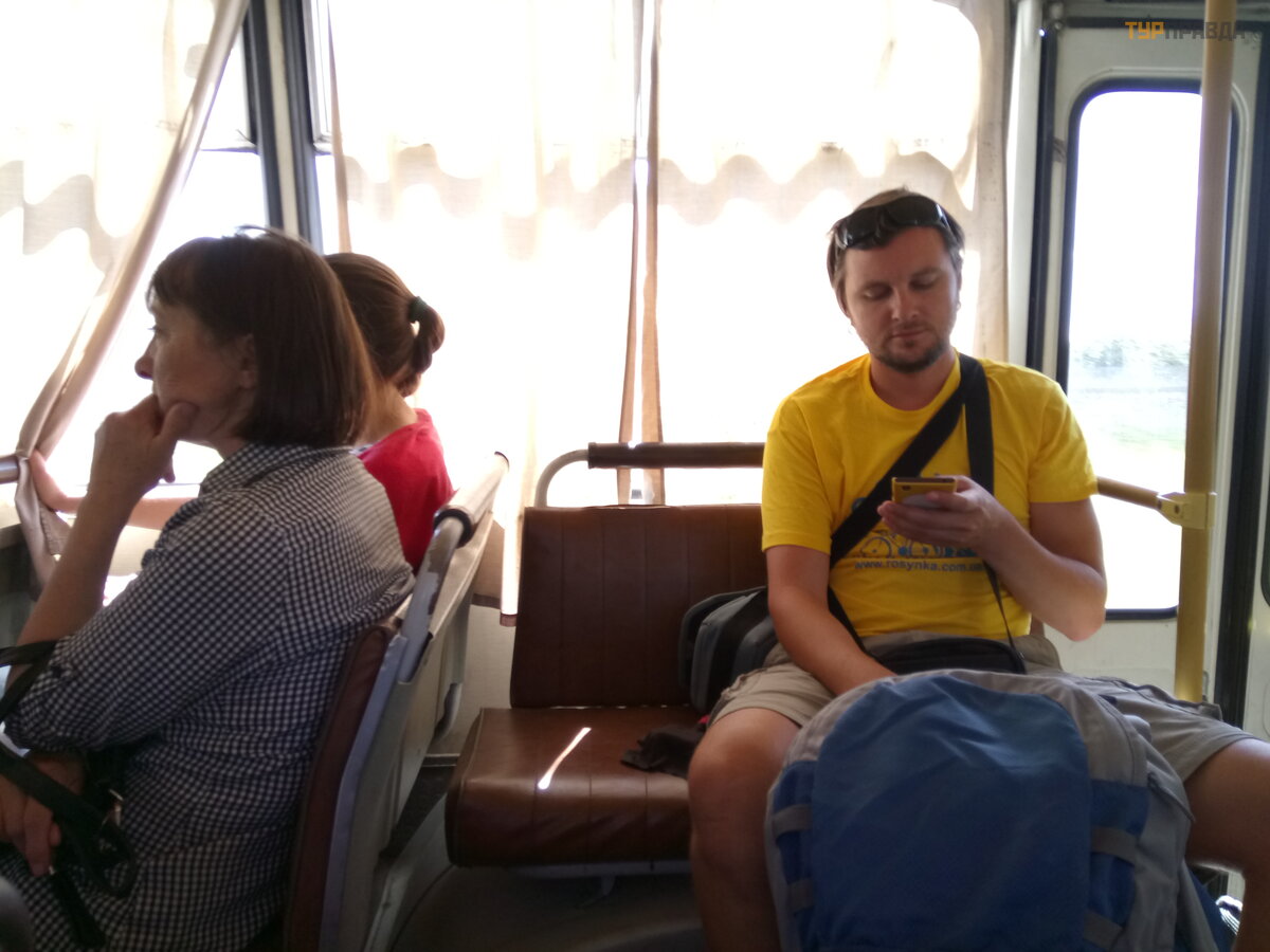 Yra mikroautobusų , kurie važ iuoja tiesiai, bet jie važ iuoja retai. Todė l pasukome sunkesniu keliu: pirmiausia pasiekė me Netiš yną , o ten iš kart persė dome į mikroautobusą į Slavutą . Bilietas iš Ostroh į Netiš yną kainuoja 10 UAH, o iš Netiš yno į Slavutą – 12 UAH.