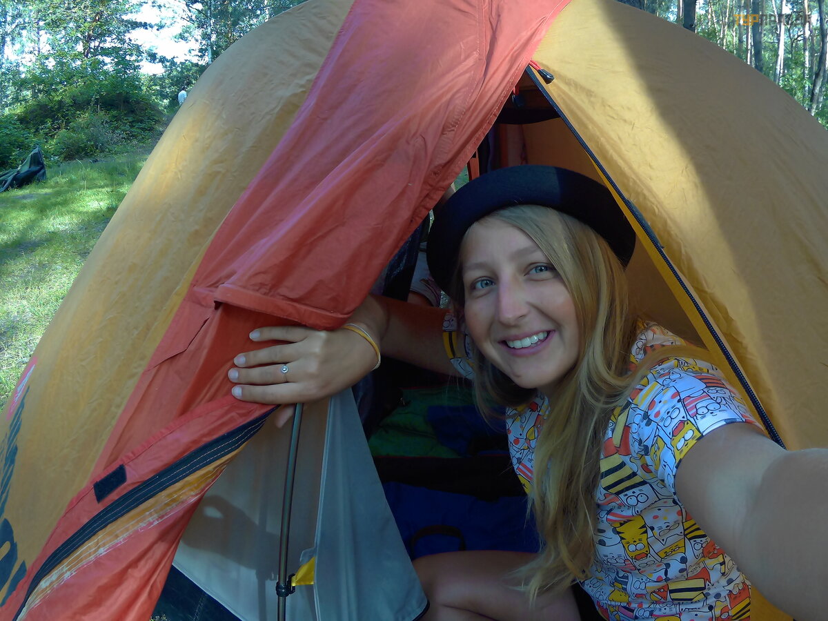 Nakvojome palapinė se prie Mė lynų jų ež erų prie Slavutos. Naktis buvo vė si, bet mums buvo patogu. Ypač po tokios į temptos dienos kaip vakar, labai greitai nupjovė me.