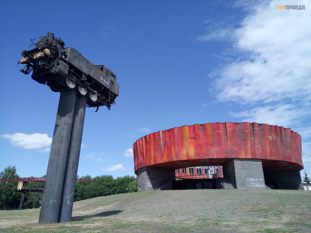 Ryš kiausias yra lokomotyvas, sumontuotas prie muziejaus pastato ant vamzdž io. Ir tada pamatai apvalų pastatą ant kalvos.