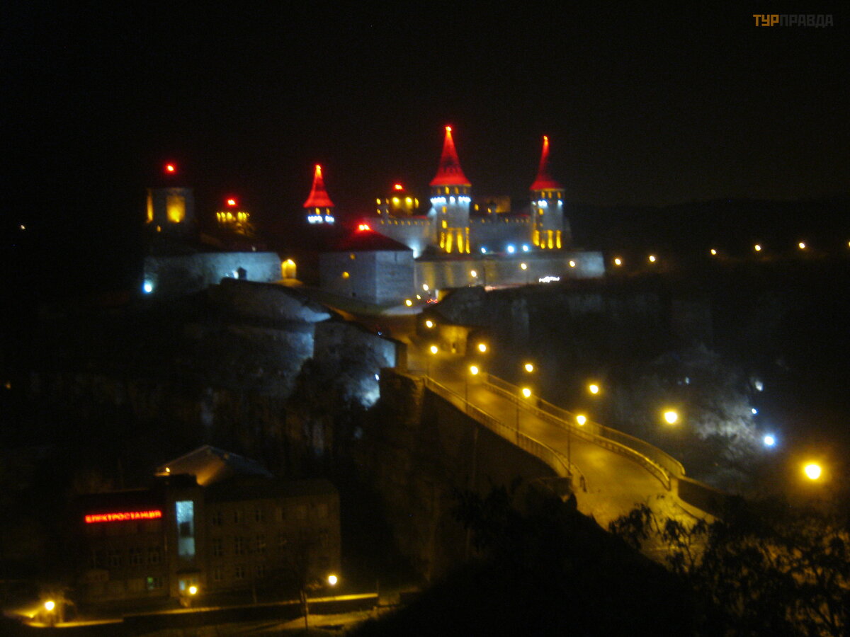 Grį ž ę į Kamenecą vė l bė game apž iū rė ti tvirtovė s foniniame apš vietime ir vaikš tome po graž iai apš viestą senamiestį iki nakties.