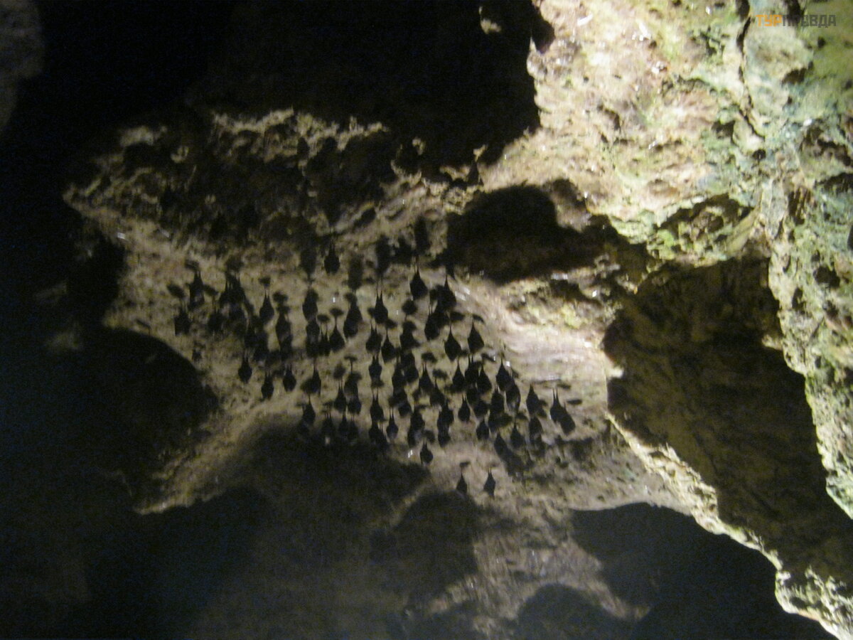 Urve yra daug gamtos iš raiž ytų figū rų (ir delfino galva, ir buivolo galva, ir krokodilo uodega ir daug daugiau), virš jų galvų verž iasi š ikš nosparniai.