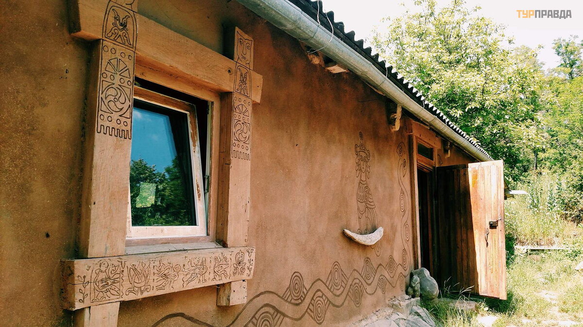 Į ė ję į kiemą jie pamatė namą su Trypilijos paveikslais ir vyrą , panaš ų į Rubiną Hudą prie ž alios suknelė s. Kaž kodė l į akis iš kart krito plastikiniai langai.