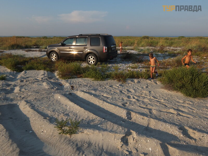 Pakankamai važ inė ję s smė lė tais Kinburno nerijos keliais, galiu pasakyti, kad bjauriausia kelio dalis į neriją yra ne smė lis, o asfaltuotas kelias nuo Golaya Pristan iki Geroisk. Tokių klastingų ir gausių duobių dar nematė net visoje Ukrainoje ž inomas greitkelis Odesa-Reni. 50 km atkarpą važ iavome 2 valandas. Po to iš važ iuoti į smė lė tą kelią palei miš ką ir ež erus buvo atpalaiduojanti patirtis. Taigi: