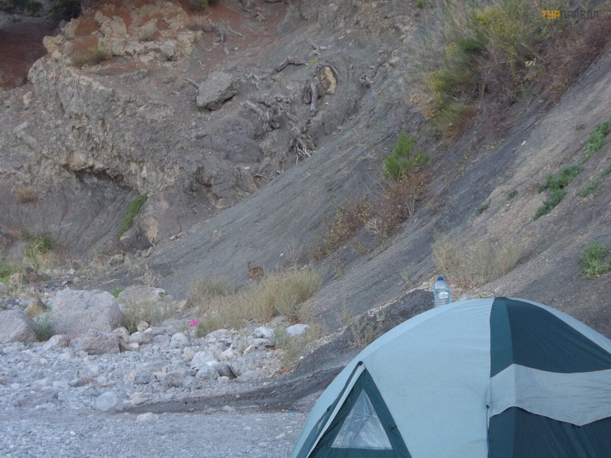 Į Karaul-Obą nuvykome apeidami bilietų kasą slaptu keliu. Tač iau tai nebė ra paslaptis. Tarpeklis, vedantis į Karališ ką jį paplū dimį , paprastai virto Brodvė jumi. Automobiliai į važ iuoja beveik į patį kadagių giraitę . Jei ne tokiems protingiems ž monė ms specialiai iš kastas griovys, jie bū tų už sukę į Kapč iko kyš ulį . Rezervato chanas! Pernai č ia irgi saugojo girininkas, kuo neapsidž iaugė me – teko duoti kraujo rublius. Bet dabar nebež inojome, ar dž iaugtis jo nebuvimu.