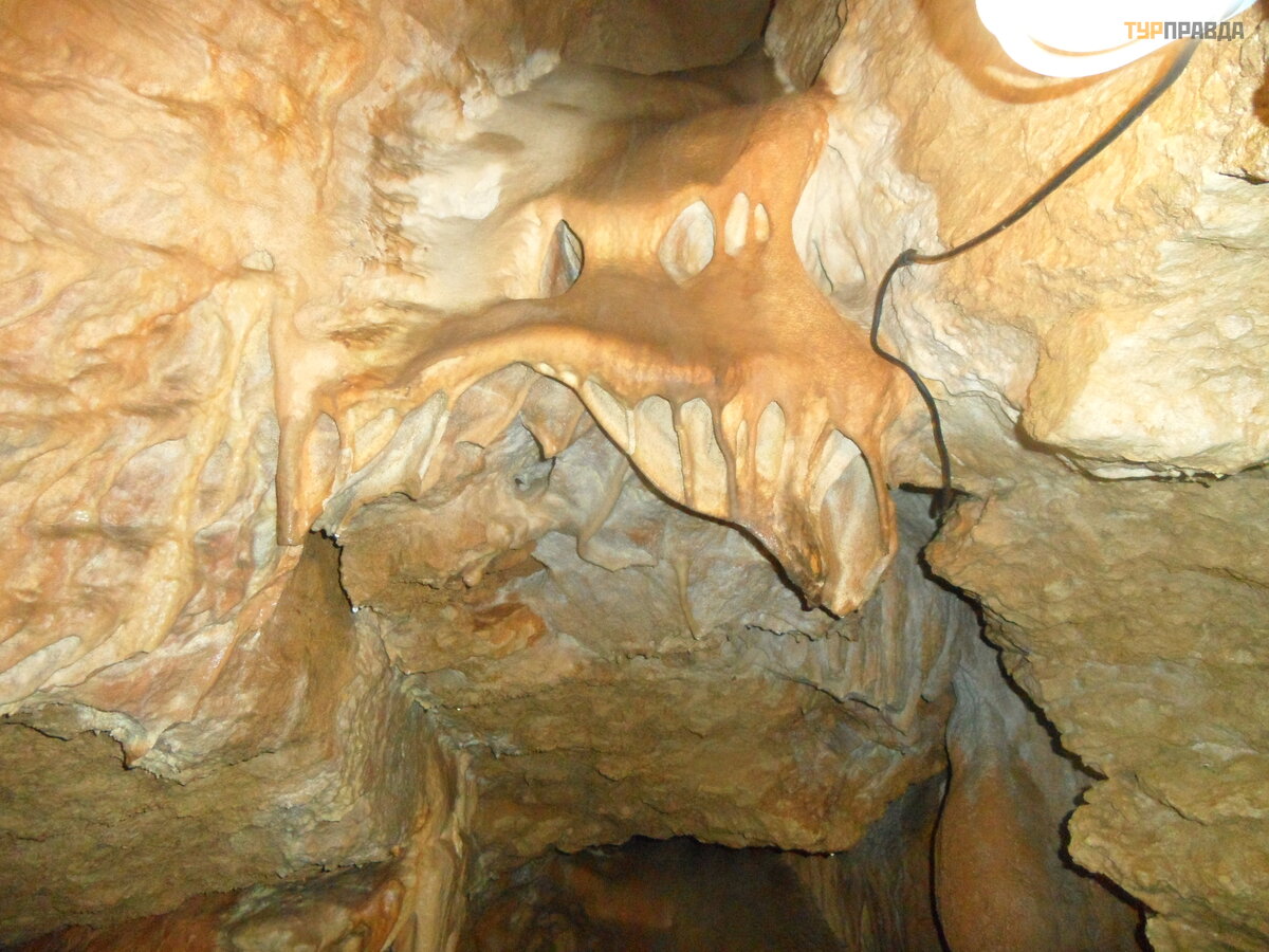 Į stojome į grupę su gidu ir nuvykome į neseniai atrastą Jaltos urvą , kuris taip pat yra plokš č iakalnyje, į ė jimo kaina 200 rublių .
