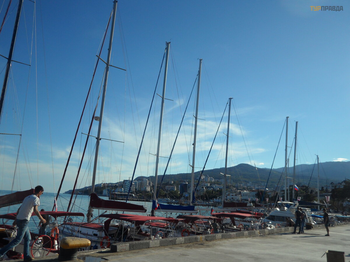 Bilietą laivui į Jaltą nusipirkome kasoje suaugusiam ž mogui į vieną pusę.300 r, į Jaltą grį ž ome jū ra.