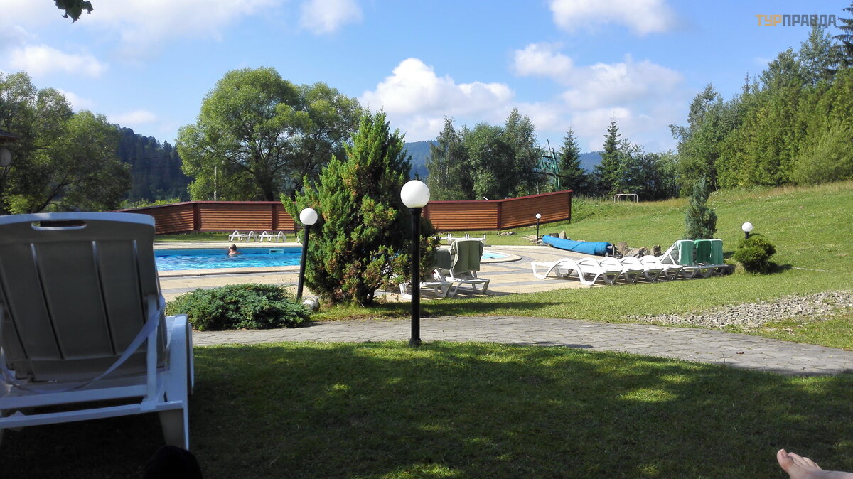 Atvykome į Slavske ryte, iš Kijevo važ iuoja tiesioginis traukinys (labai patogu), š alia vieš buč io nusipirkome vaisių , saldumynų , vyno. Arbatos kava. Iš esmė s viskas, ko reikia maloniai vieš nagei. Po pusryč ių nuė jome prie baseino (didelis graž us baseinas), patogū s gultai, bare galima už sisakyti kokteilių ir už kandž ių , parsisių sti į domią knygą ir atsipalaiduoti : )))) Po skanios vakarienė s pasivaikš č iojome po š į mielą miestelį . . Grį ž ę į vieš butį – pasiė mė me neš iojamą jį kompiuterį , vaisius, arbatą , antklodę – nuė jome prie baseino paž iū rė ti romantinio filmo. Vakare prie baseinų niekas nė ra, ideali vieta pasimatymui))