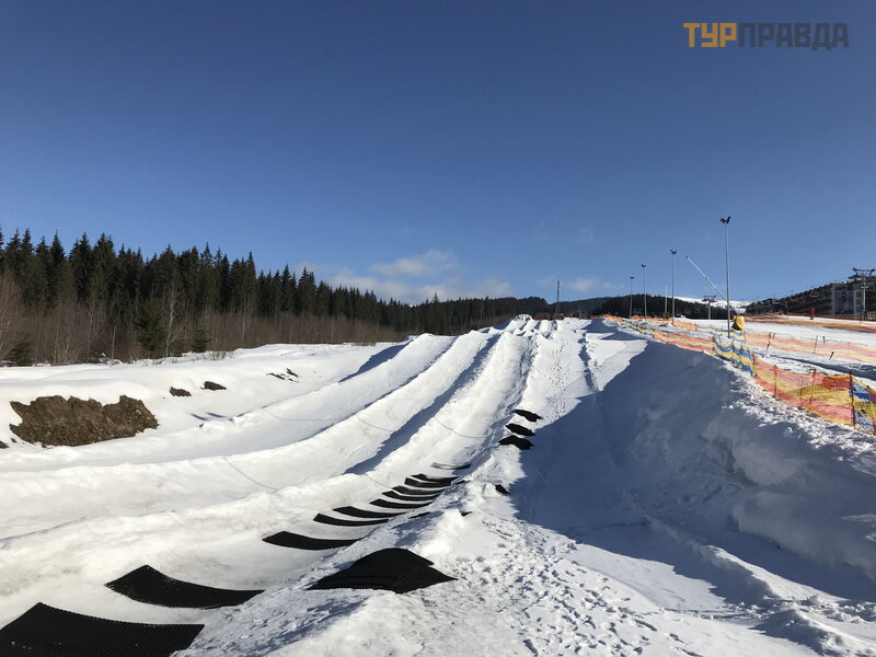 Для третьего дня я выбрал новое для себя развлечение, которое в Буковеле называется «Сноутьюбинг» - спуск с горы, покрытой льдом, на надувных «таблетках».