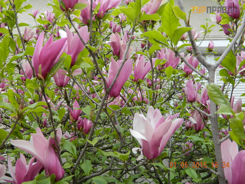 Nors be sakurų pavasarį Už karpatė je gausu ir kitokio ž ydinč io grož io: č ia tu ir magnolijos, ir alyvos, ir keletas neatpaž intų geltonų gė lių ir akacijų :