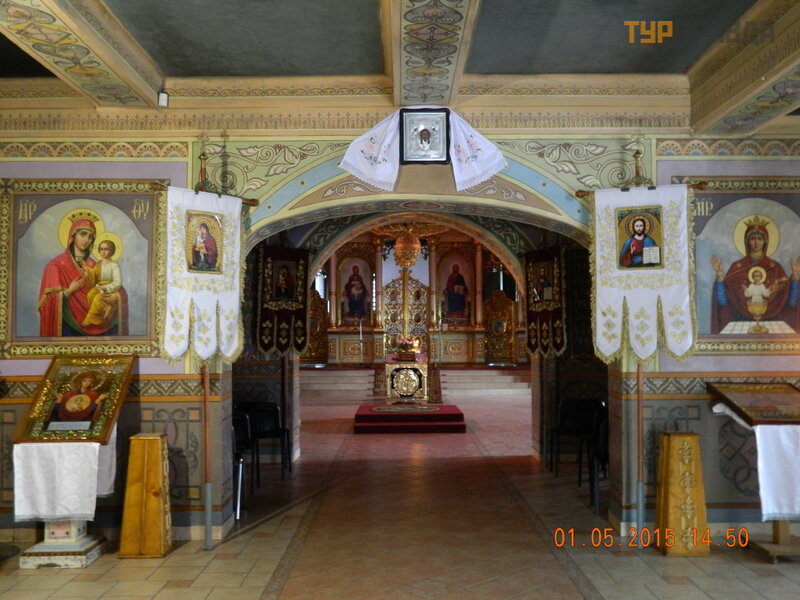 Интересно, что внутри храма на потолке – расписные бАлки: