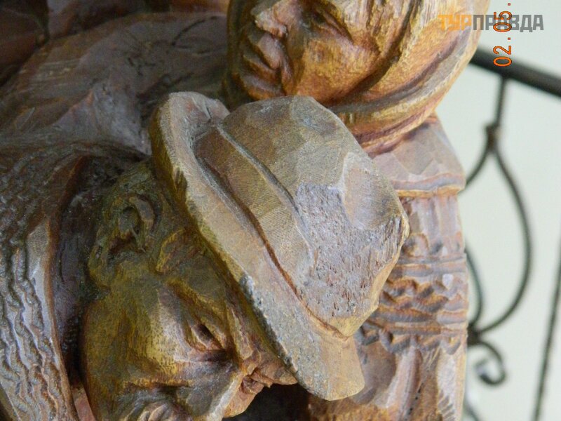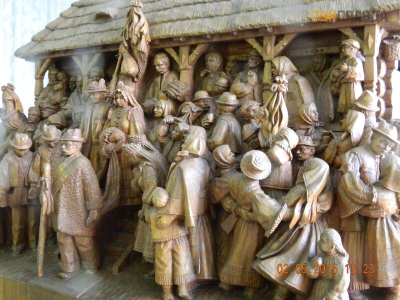 Kasa yra parodų centre. O jo salė je – medinė kompozicija „Jaunikiui. Vestuvė s". Atrodo, kad jis buvo iš pjautas iš vieno medž io gabalo, bet iš tikrų jų tai yra trys medinė s detalė s, kurios yra meistriš kai sujungtos. Tiesiog paž iū rė kite: