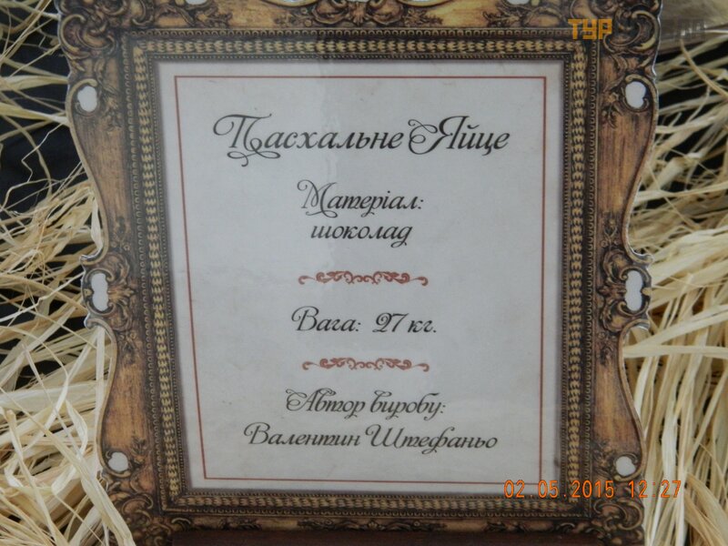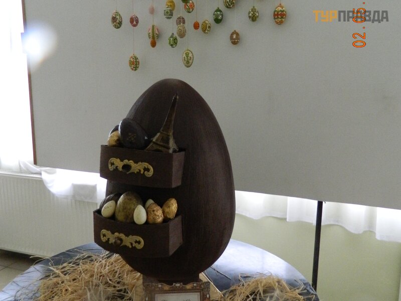 Parodų salė je galė site pasigrož ė ti milž iniš ku š okoladiniu velykiniu kiauš iniu: