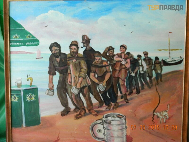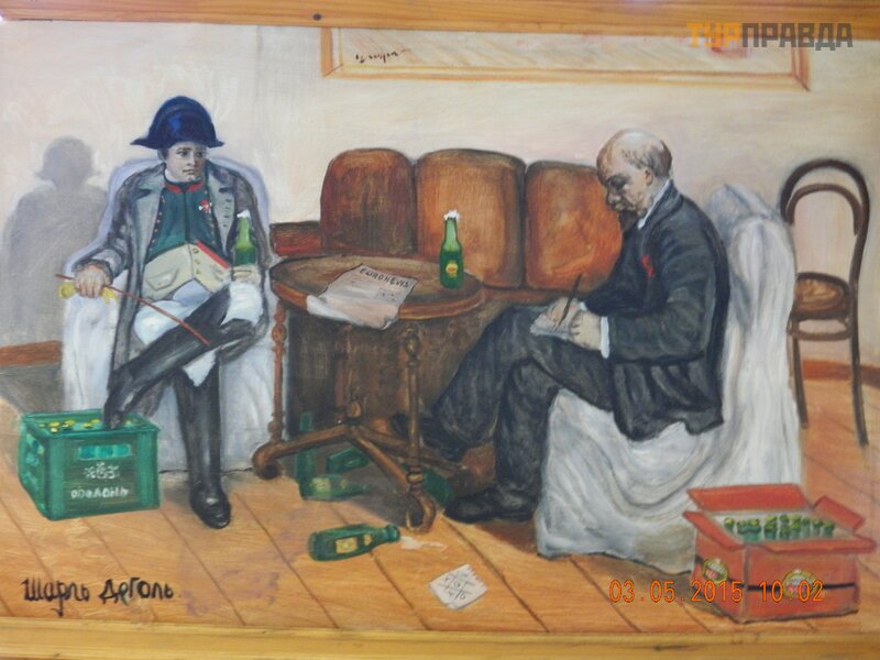 Iš vaizdingų paveikslų , puoš ianč ių „Girtų trobelė s“ sienas, į spū dį paliko kiti: