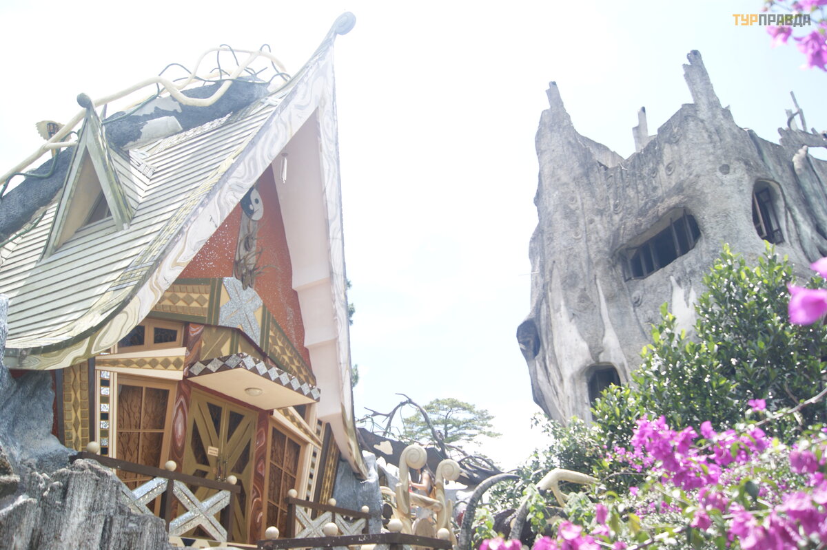 Kodė l visi važ iuoja į Dalatą serpantinu? Ž inoma, pamatyti neį prastą vieš butį Sveč ių namai „Hang Nga“. Jie rodė ir pasakojo apie jį ir „Erelyje ir uodegose“. Mano nuomone, vieta tikrai neį prasta, bet jokio malonumo nepatyriau. Turistai tamsū s, vietų maž ai.
