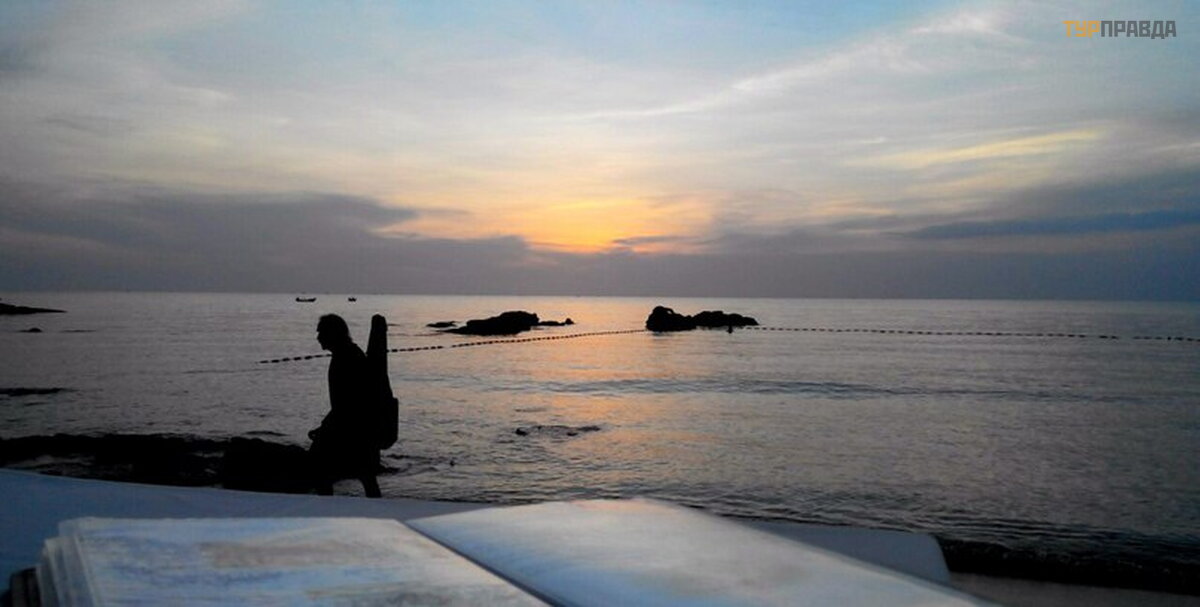 Jau beveik sė dime kojomis jū roje, prasideda saulė lydis, nuo jū ros puč ia lengvas vė jelis, skystindamas vakarinę Azijos drė gmę , o siela negali nesidž iaugti tokiu spindesiu.