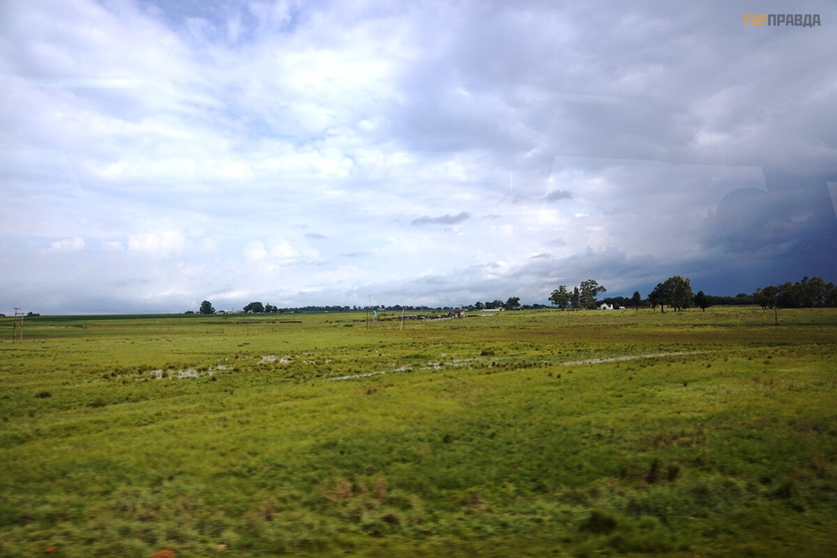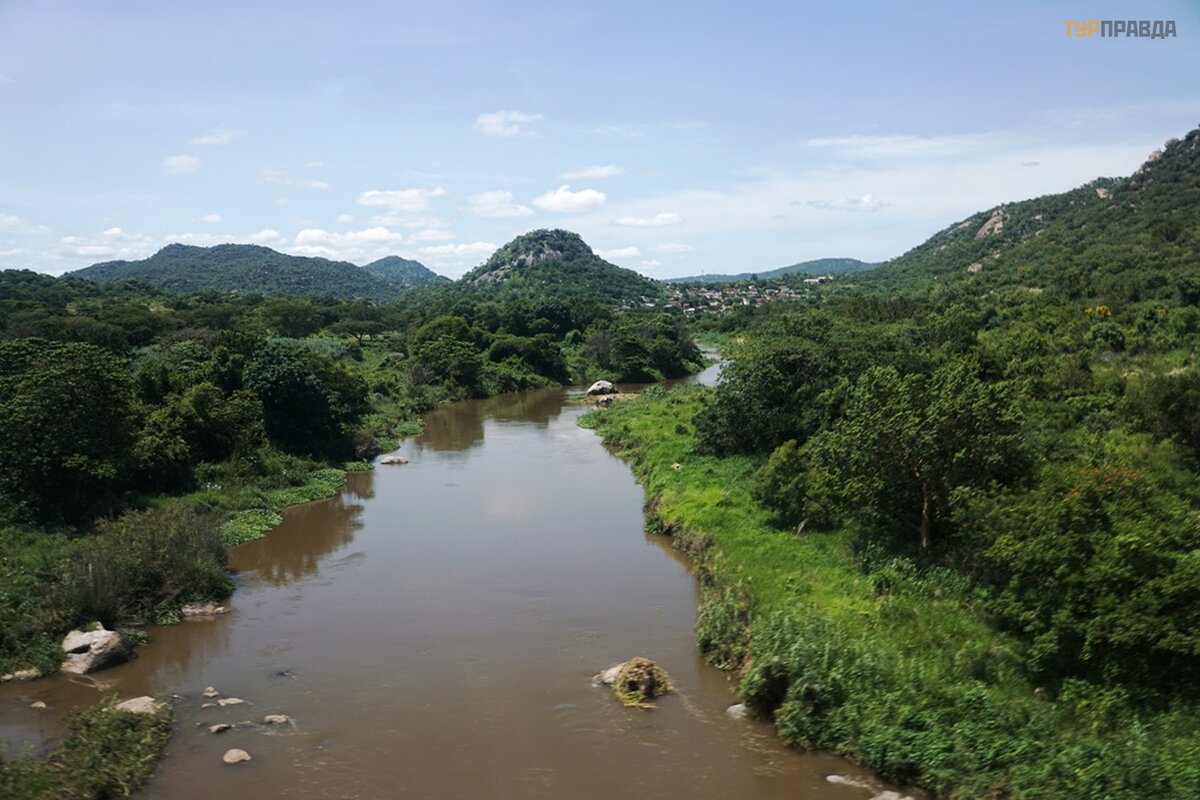 Autobuso viduje buvo kaip po Makhno. Pilnas š ė lsmas. Kai kuriuos daiktus baklaž anai pasiė mė su savimi į autobusą . Virš utinė s lentynos į trū ko nuo svorio. Tinklai ant sė dynių atloš ų jau seniai nukirsti, matyt, ž uvims gaudyti. Autobusas važ iavo ne greič iau kaip 80 km. Kelio reljefas monotoniš kas. Daug apleistų kaimo vietovių . Turint tokį derlingą klimatą ir geras ž emes, parduotuvė se iš darž ovių ir vaisių beveik nieko nė ra. Daž niausiai bananai ir maž i ananasai. Mango beveik neparduodama, bet tas, kurį galima rasti, yra labai maž as ir negraž us. Vienetas kainuoja 4.85 ZAR. (beveik 180 rublių ). Į degę ž monė s nenori už siimti ž emė s ū kio produkcija. Sių sk jiems vadovauti mū sų ministro Tkač iovo ž emė s ū kiui. Jis apsė tų laukus kvieč iais, dalį ž emė s prijungtų prie Tkač iovų š eimos, kitaip jam neuž tenka vien kubieč ių ž emių . Daug baklaž anų priversč iau prisijungti prie kazokų .