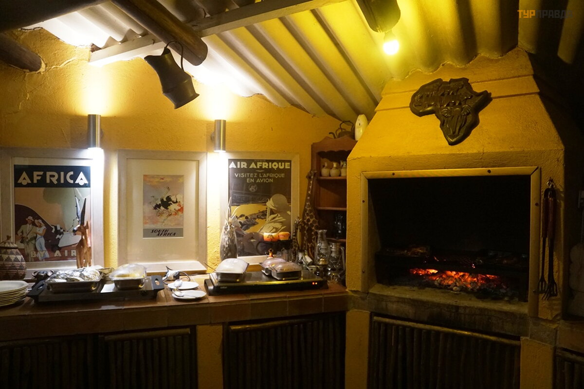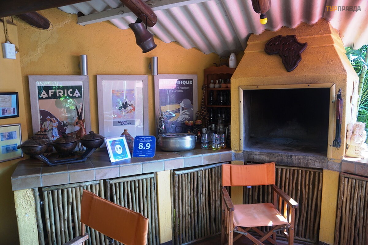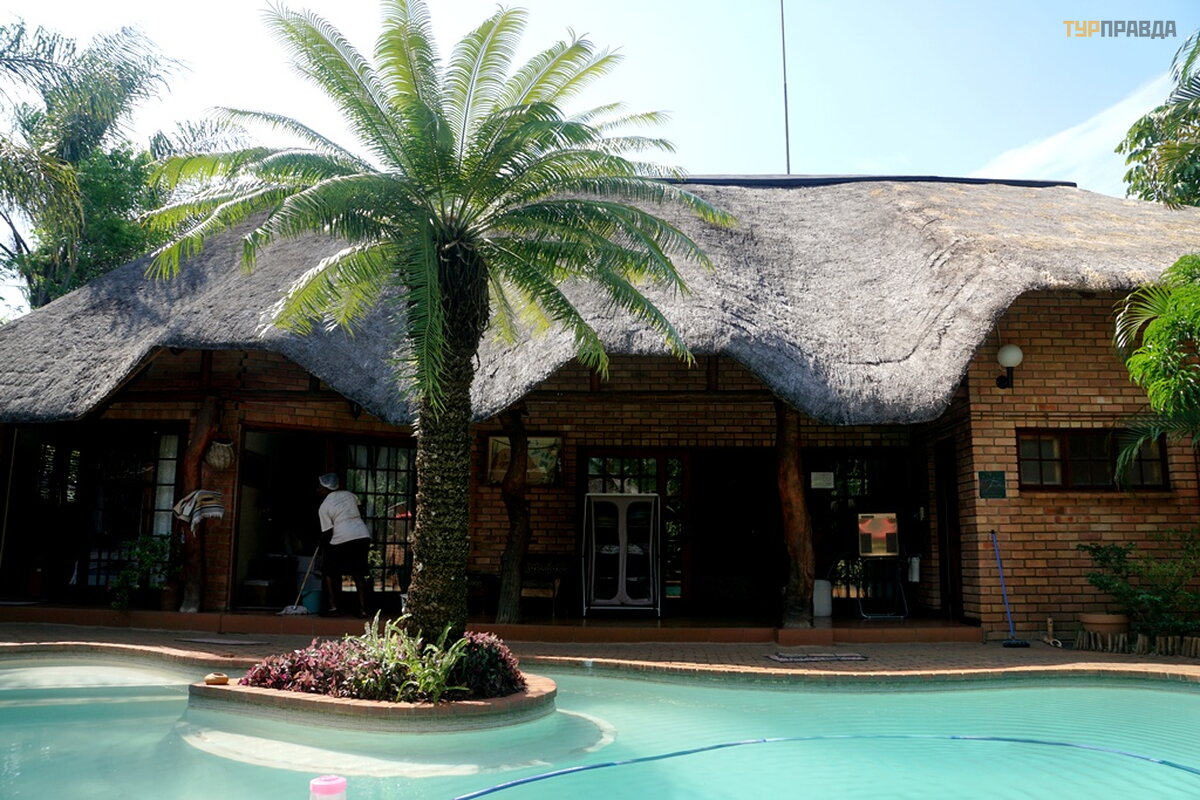 Prie vartų mane pasitiko baltoji vieš buč io š eimininkė . O, suš uko ji, o aš jau norė jau eiti susitikti, nors paraš iau jai, kada atvyksiu. Pirmiausia ji papasakojo apie gyvenimo taisykles. Kai jos kavinė dirba, kiek apytiksliai kainuoja pusryč iai ir vakarienė . Ji aprodė teritoriją ir apsigyveno mano kambaryje, atskirame name, stovė jo pavė syje. Man viskas patiko, kaina irgi, bet galė tų bū ti ir pigiau, nes vanduo baseine drumstas ir lapuose. Aš už sisakiau vieš buč ius Afrikoje per Booking. com iš Novorosijsko. Ten nuotraukoje matote vieną dalyką , o č ia matote tikrą jį . Brangu, bet visko yra. Vakare mane paleido vakarienei ž vakių š viesoje. Viskas buvo graž u ir skaniai kvepė jo. Kai buvo patiektas maistas už.100 ZAR, supratau, kad produktai iš prekybos centro – ne pirmas š viež umas.